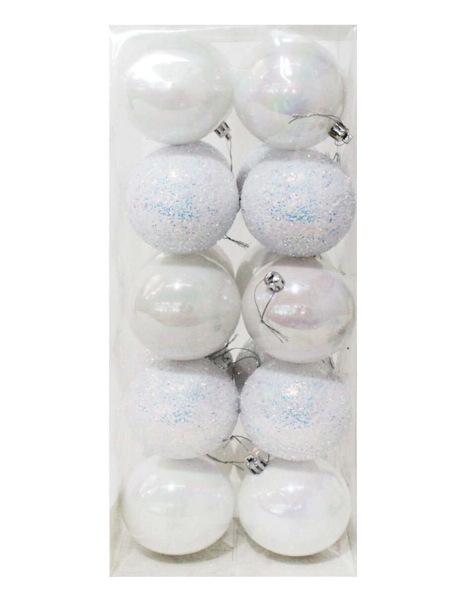 Juego de 20 esferas blancas lisas y diamantadas de 8cm