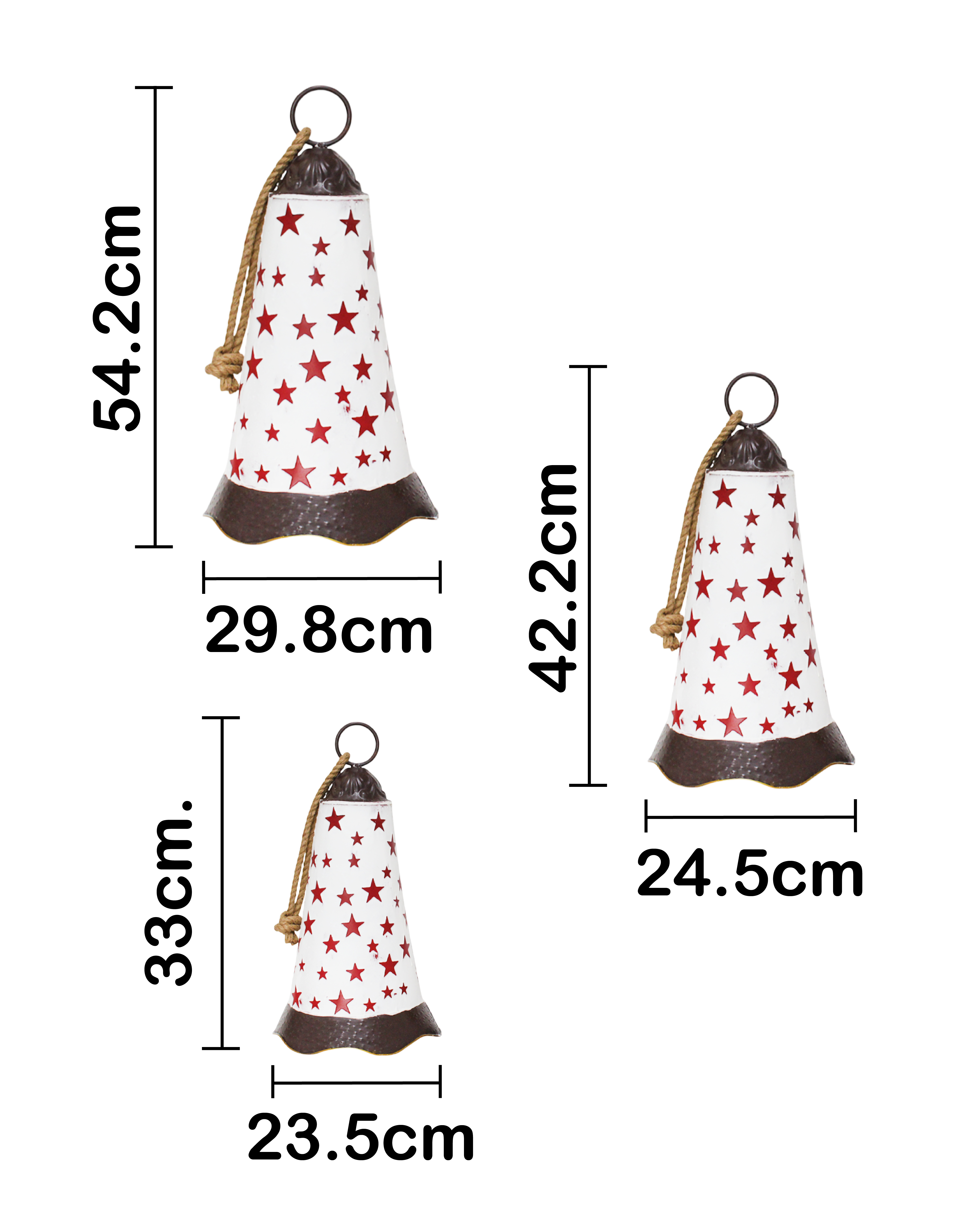 Juego de 3 Campanas Blanco con Estrellas Rojas