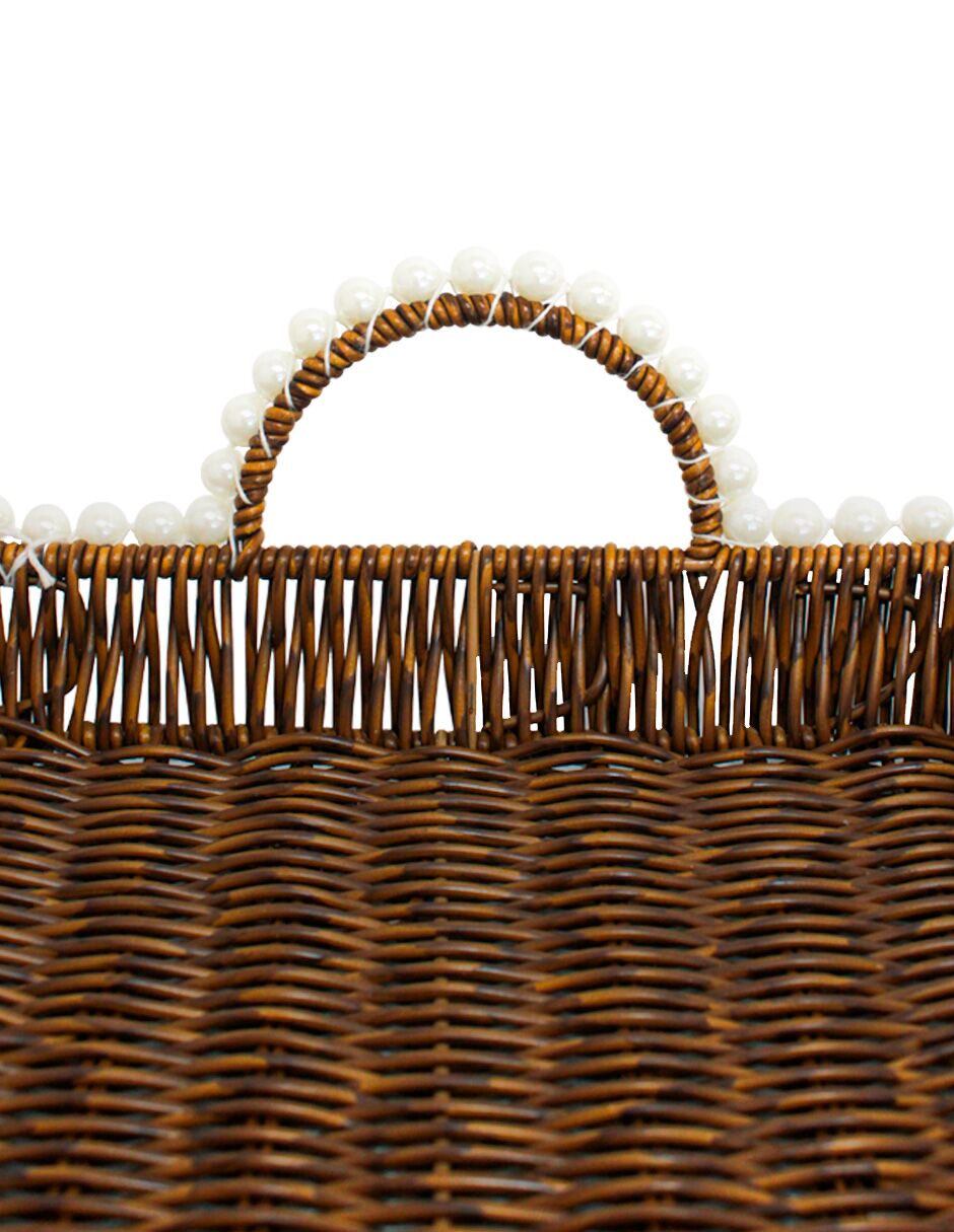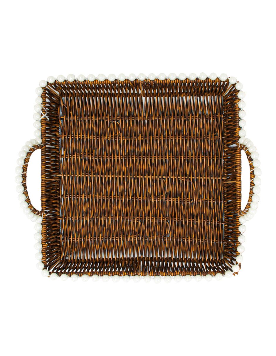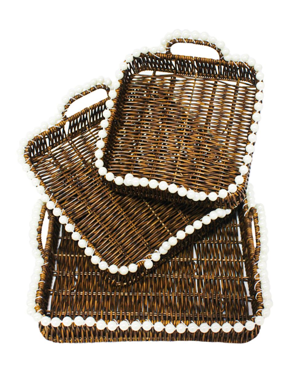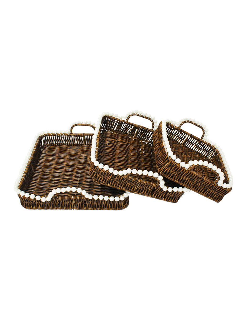 Juego de 3 cestas de plástico café cuadradas con perlas en las orillas de 28x1x5cm/24x1x8/20x1x9cm