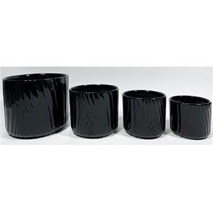Juego de 4 macetas de cerámica con diseño de lineas de color negro de 19.5×19.5×17/15x15x13/13x13x11.5/15.5×15.5x10cm