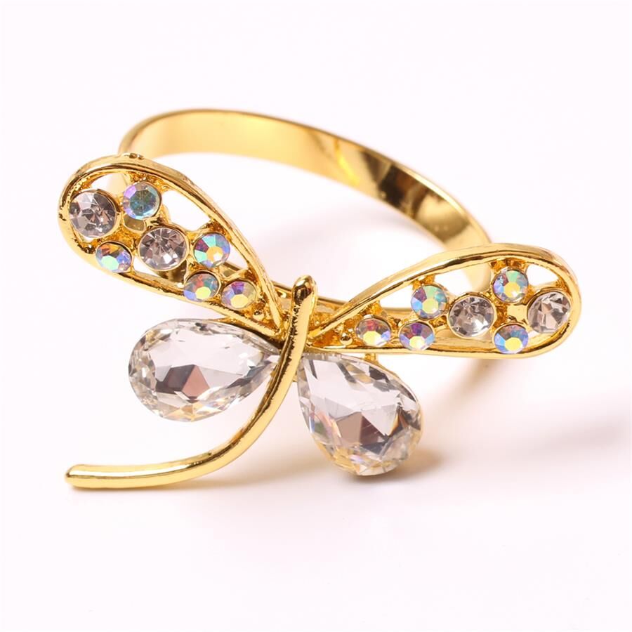 Juego de 4 servilleteros dorados diseño libelula con brillantes de 4.7×3.4x4cm