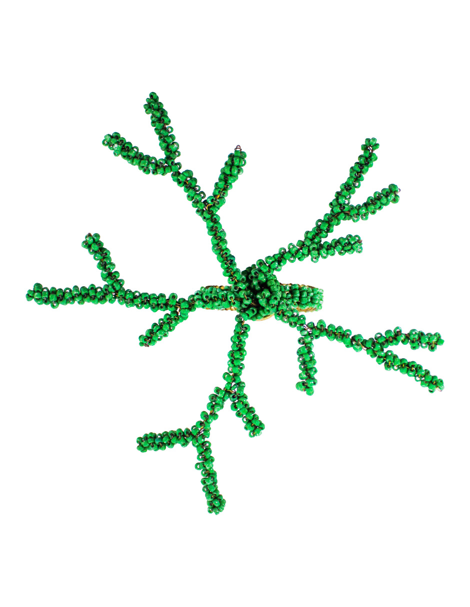 Un toque de elegancia y estilo para tu mesa. Este set de 4 servilleteros con chaquiras verdes es el accesorio perfecto para añadir un aire artesanal a cualquier comida. Con un diseño que simula ramas de coral y un diámetro de 4cm, estos servilleteros crean un ambiente ideal para proteger tus servilletas, y sorprenderán a todos con su belleza, durabilidad y funcionalidad.
