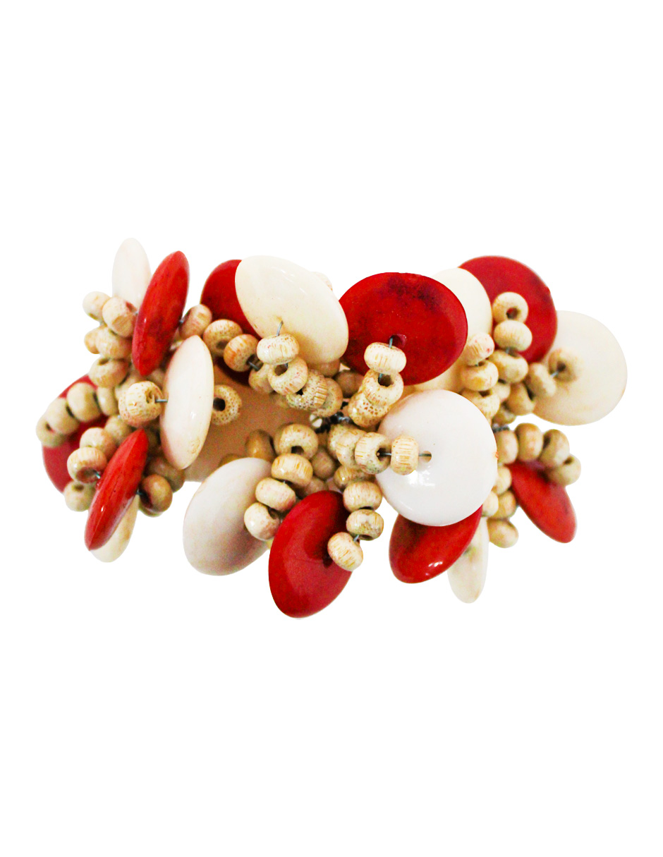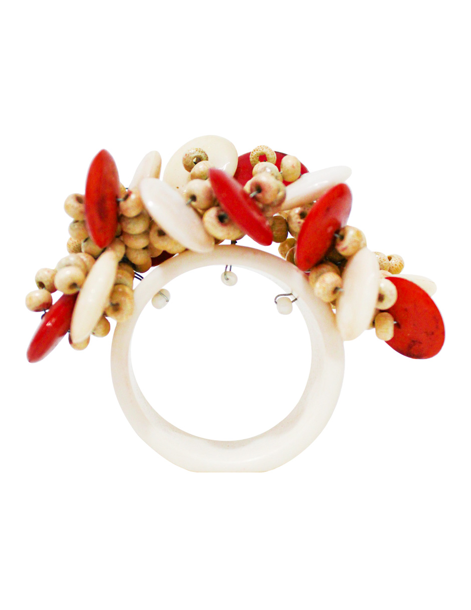 Set de Servilleteros de Cuentas Mixtas Rojas y Natural