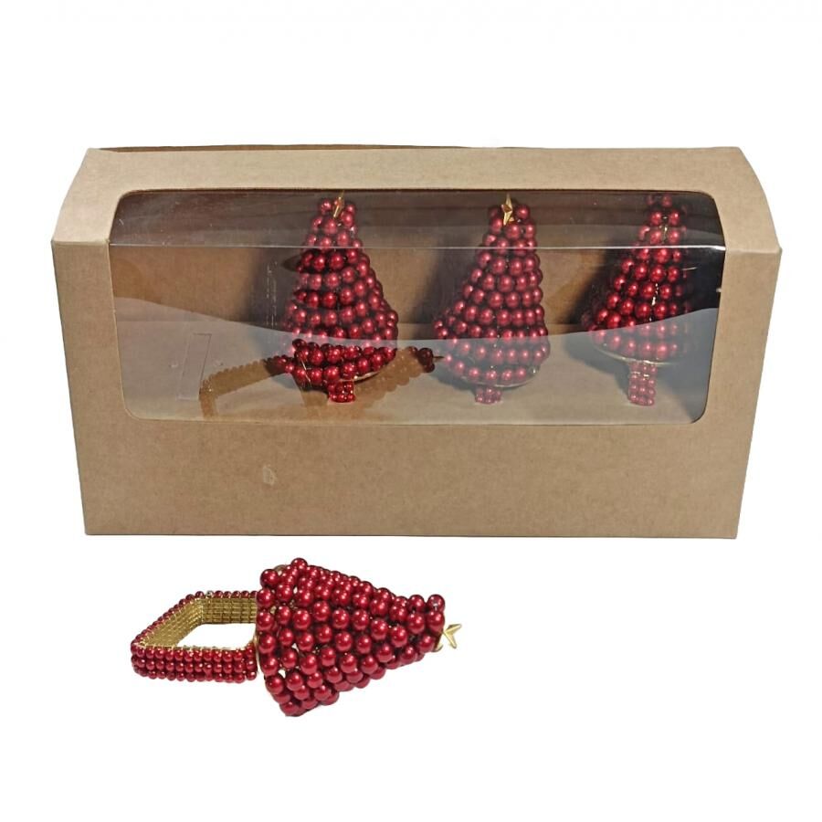 Viste tu mesa con el espíritu de la Navidad con este set de 4 servilleteros de 5x10cm. Su diseño único en forma de árbol de Navidad, adornado con pequeñas perlas rojas y una base dorada, es el acento perfecto para tus cenas festivas. Estos servilleteros crean un ambiente alegre y tradicional, haciendo de cada reunión un momento memorable.