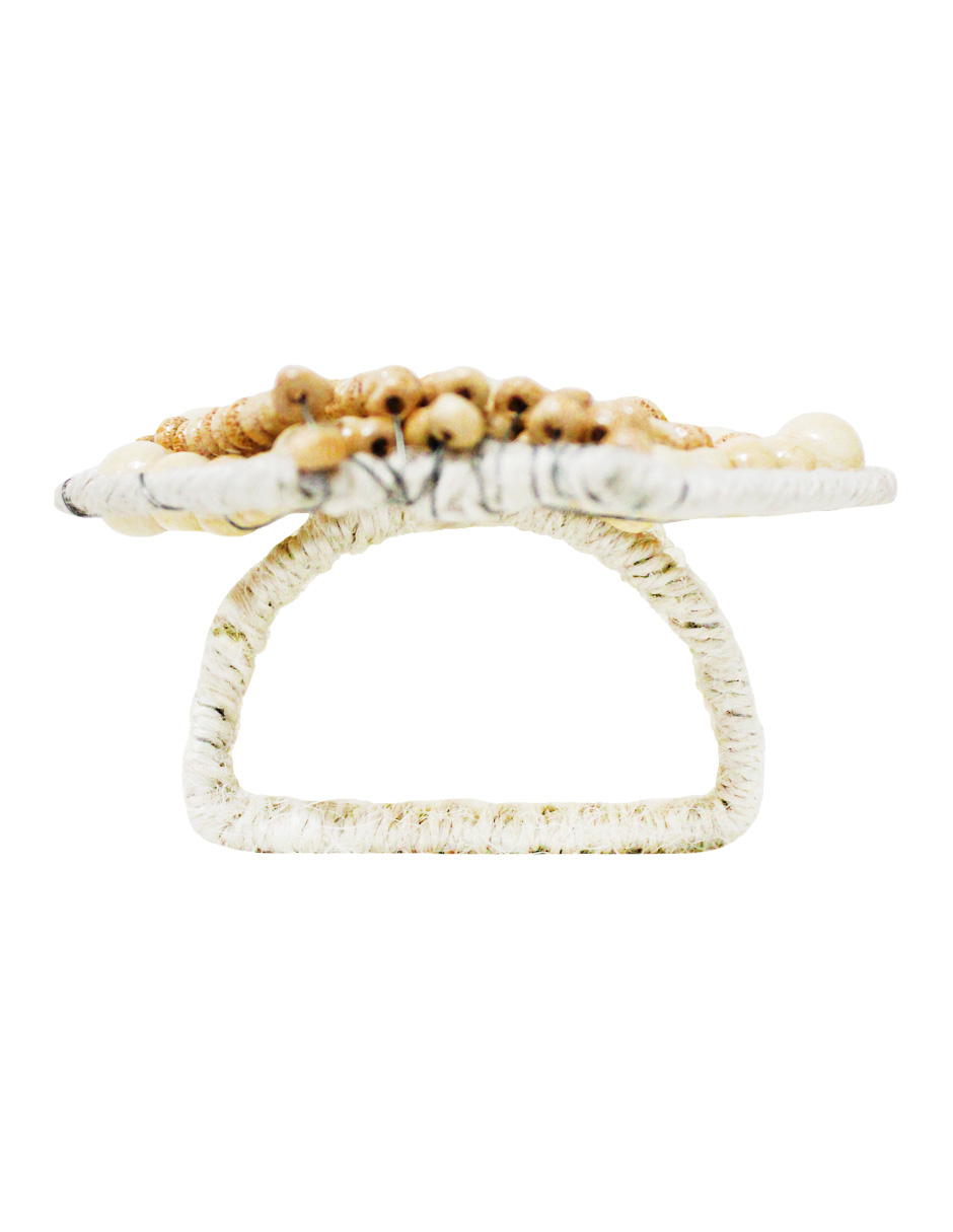 Un toque de diversión y elegancia para tu mesa. Este set de 4 servilleteros con forma de concha de mar de color natural es el accesorio perfecto para añadir un aire artesanal y playero a cualquier comida. Fabricados con chaquiras o pequeñas cuentas de madera, estos servilleteros crean un ambiente ideal para sostener servilletas y sorprenderán a todos con su belleza, durabilidad y funcionalidad.