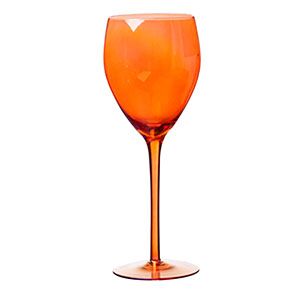 Set de 6 copas de forma estilizada con un vibrante color naranja y un acabado iridiscente que deslumbra con destellos de arcoíris. Perfecto para una mesa alegre y atrevida. El material es vidrio.