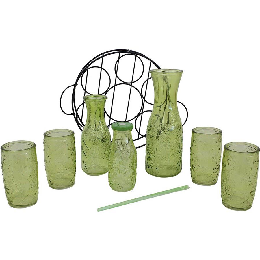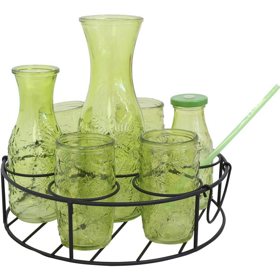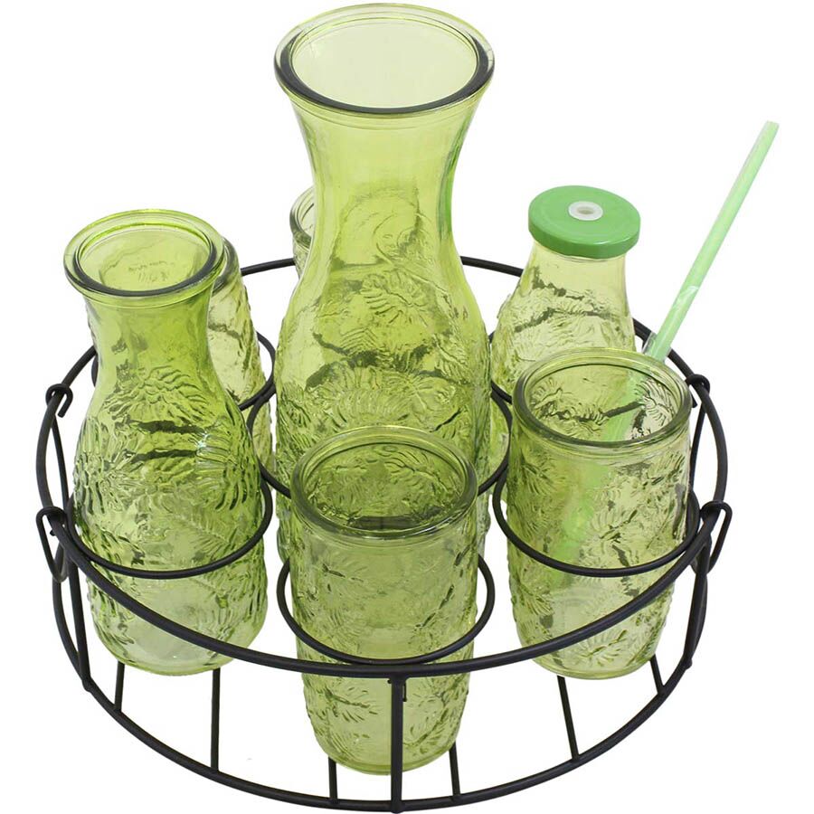 Juego de 7 tarros de cristal verdes en base de metal – Este producto puede presentar diversos detalles tanto estéticos como en su empaque y por ningún motivo es aplicable la devolución y/o reembolso del mismo.