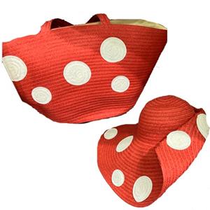 Juego de bolso y sombrero rojo con puntos blancos para playa