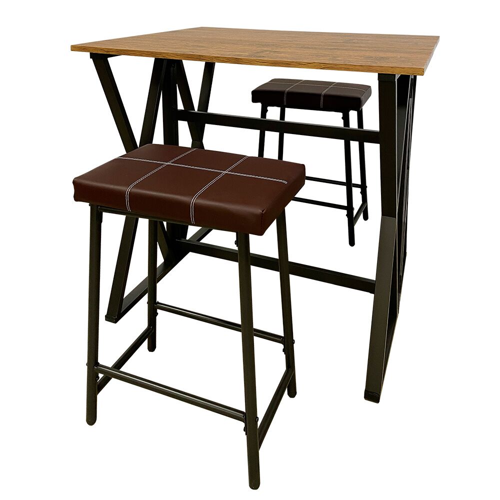 Juego de mesa alta ideal como desayunador o bar de cocina. Incluye una mesa rectangular alta y 2 bancos a juego. Combina la estabilidad de la estructura de metal con la durabilidad de las superficies de imitación madera. El material es metal e imitación madera. Medidas: 99 x 79.5 x 91 cm / 99 x 39.5 x 93 cm.