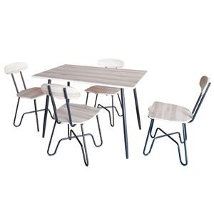 Juego de comedor familiar que incluye una mesa rectangular y 4 sillas. El diseño moderno presenta acabados de imitación madera sobre una base de metal robusta para máxima estabilidad. El material es metal e imitación madera. Medidas: 110 x 70 x 75 cm / 40 x 52 x 75 cm.