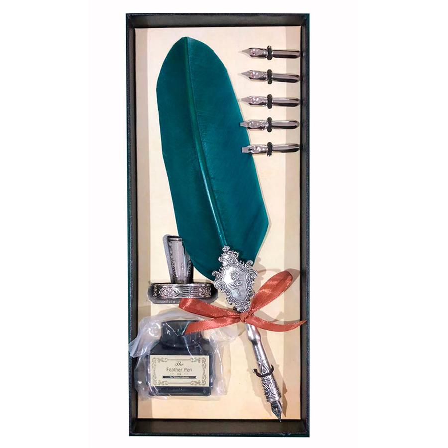 Juego de pluma Estilográfica verde con 8 accesorios de 11.5x26x4cm