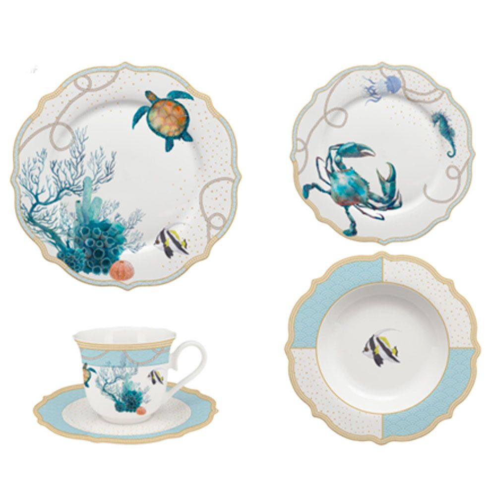 Juego de vajilla de porcelana con 20 piezas diseño marino blanco con azul