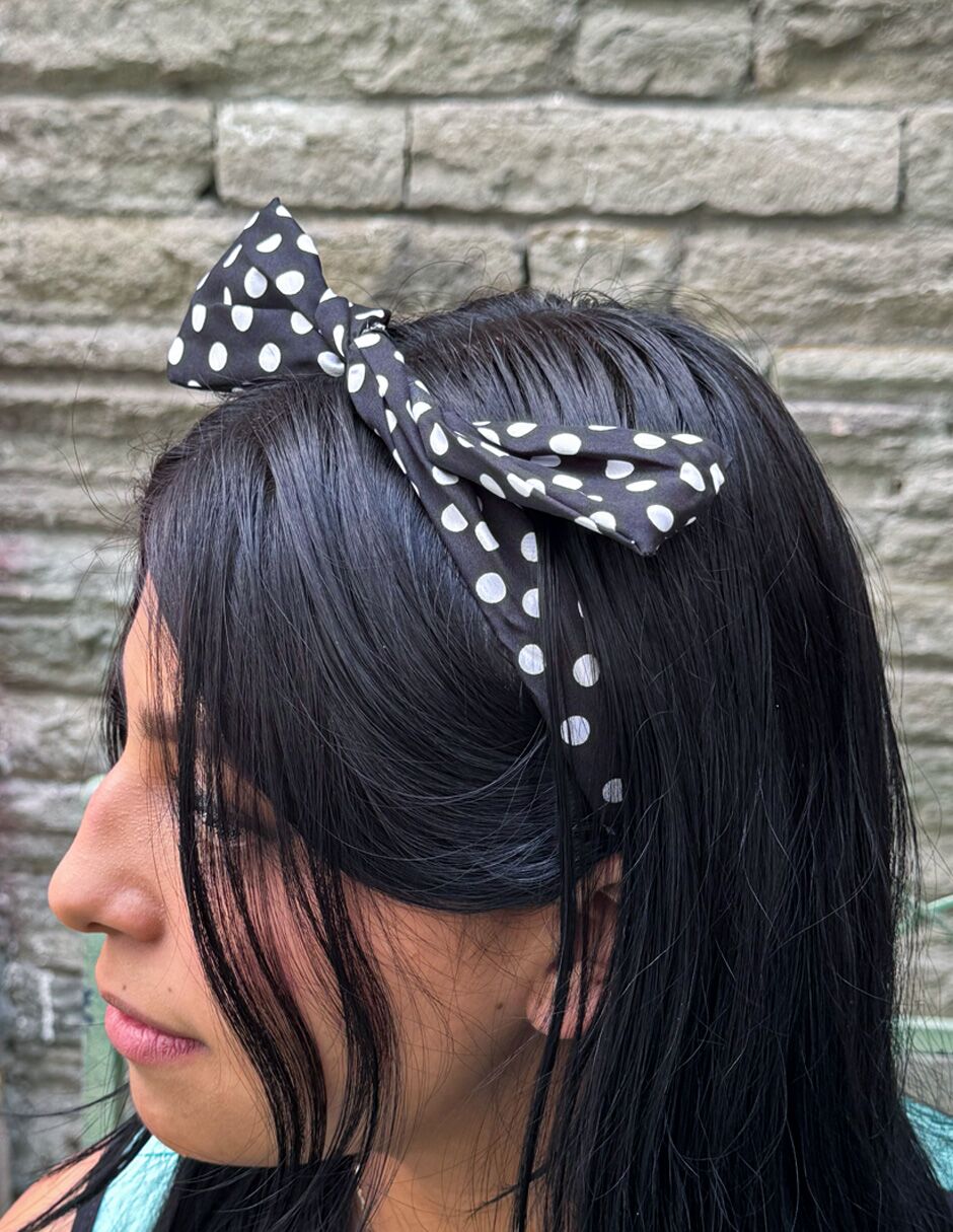 Juego de vestido color menta con puntos negros con guantes y diadema talla S