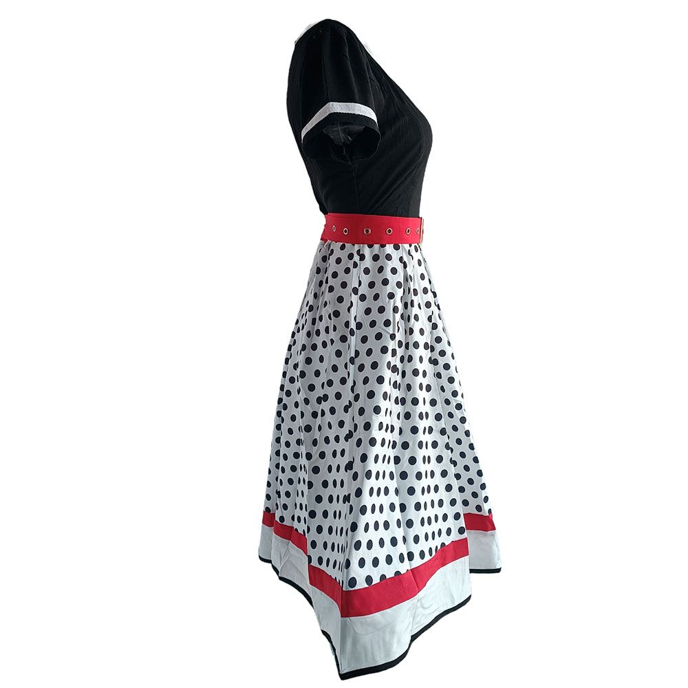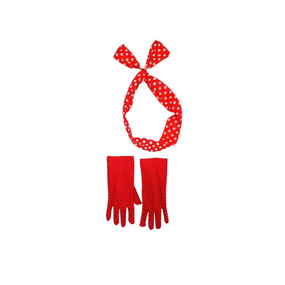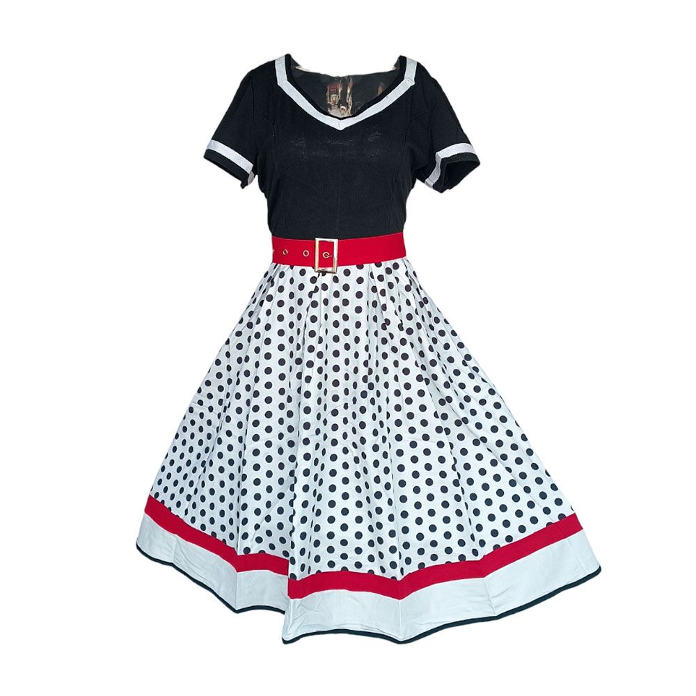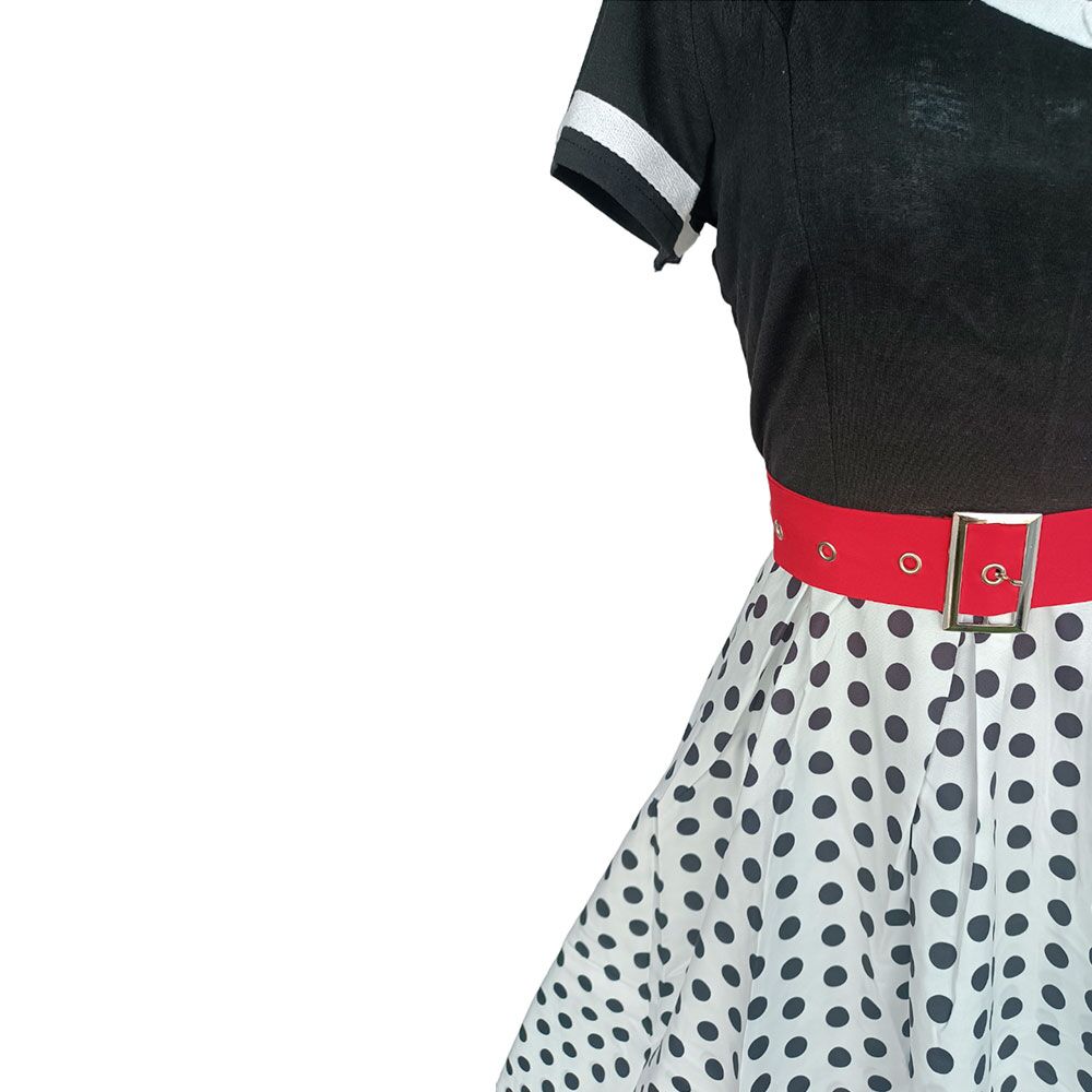 Juego de vestido con negro falda blanca con puntos negros con guantes y diadema talla M