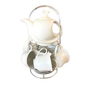 Juego de Tetera y 6 Tazas con Rack Metálico