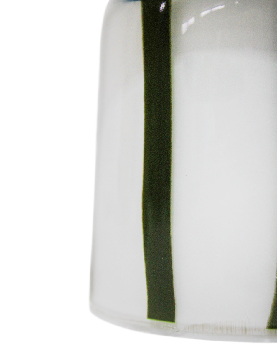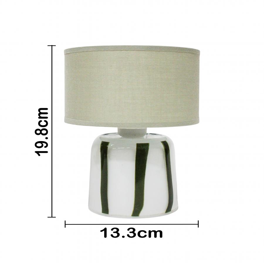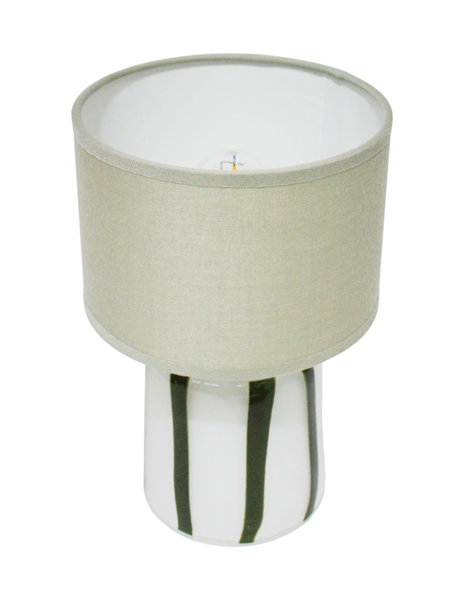 Lámpara blanca con líneas verdes y luz LED. Esta pieza es ideal para quienes buscan una decoración moderna, funcional y llena de estilo. Su diseño minimalista y toque de color evoca una sensación de frescura y tranquilidad, perfecta para crear un ambiente único que ilumine tus noches. Material: cerámica y LED.