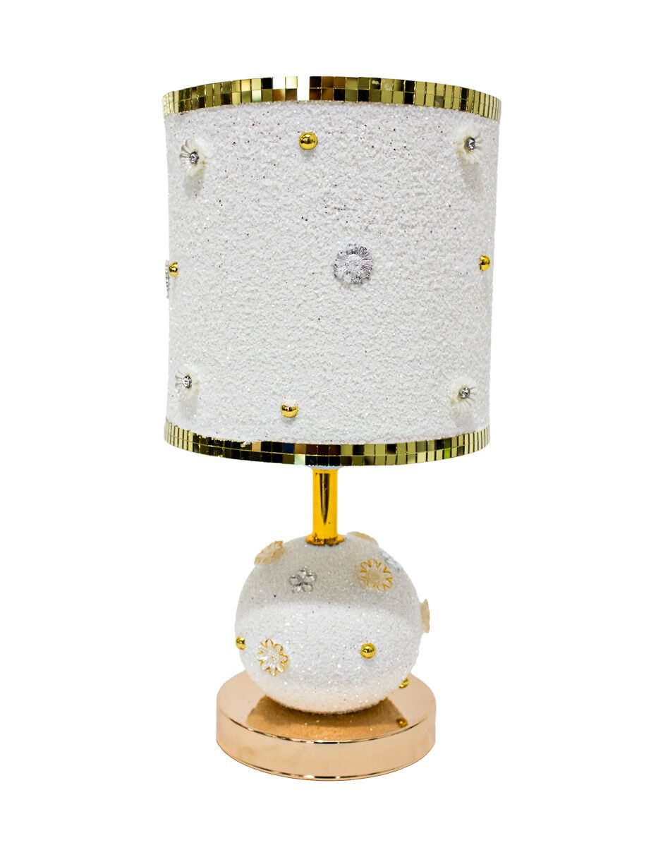 Lámpara de mesa de cerámica blanca con base y perlas de 16x16x33cm