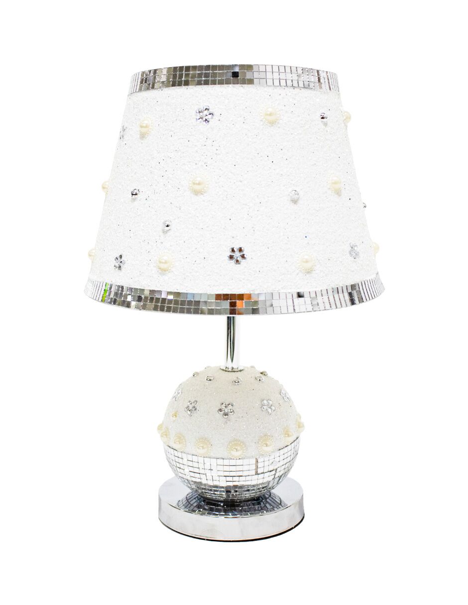Lámpara de mesa de cerámica con perlas plateadas de 24.5×24.5x36cm