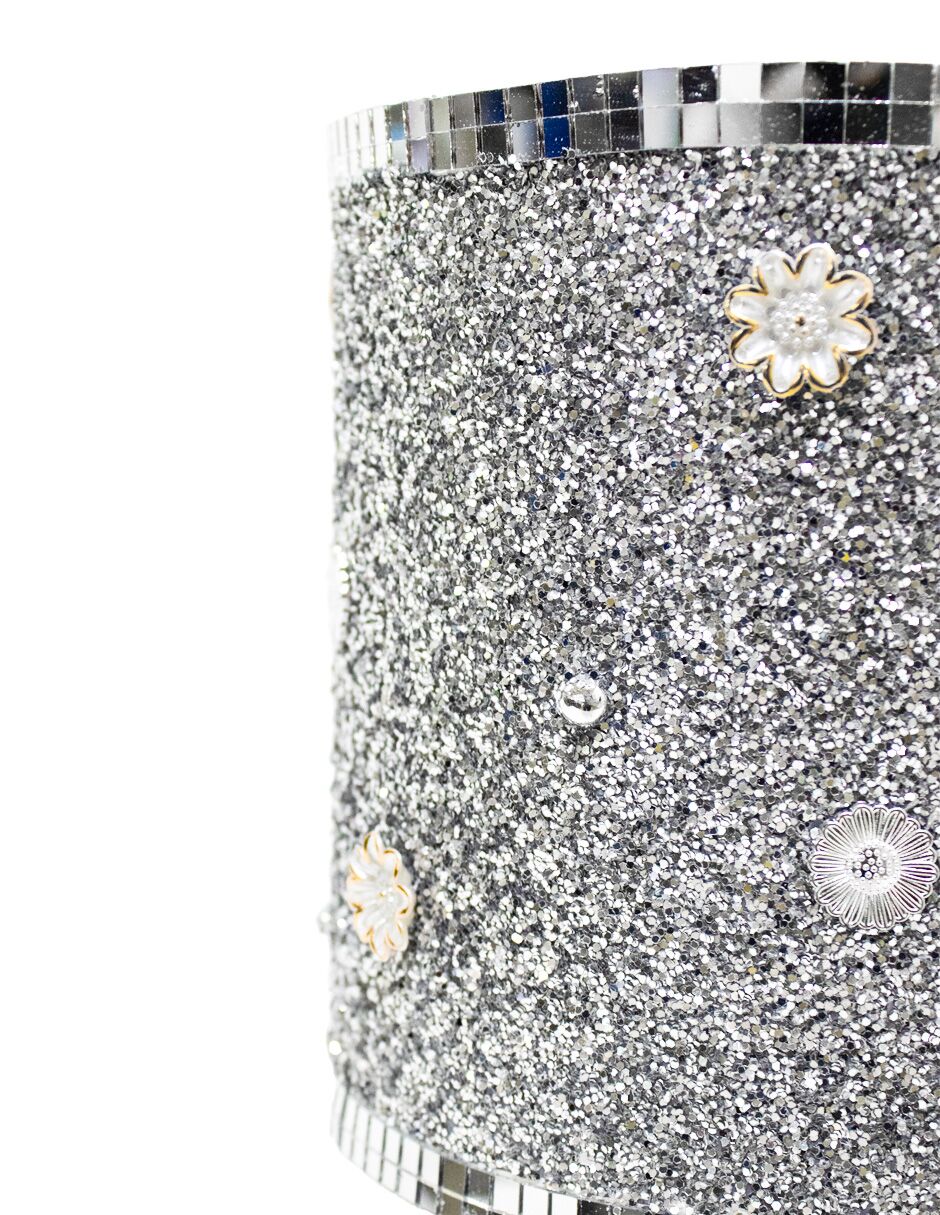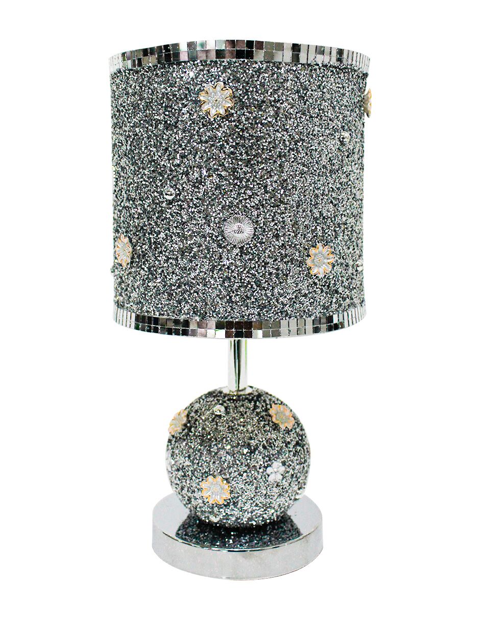 Lámpara de mesa de cerámica plateada con base y perlas de 16x16x33cm