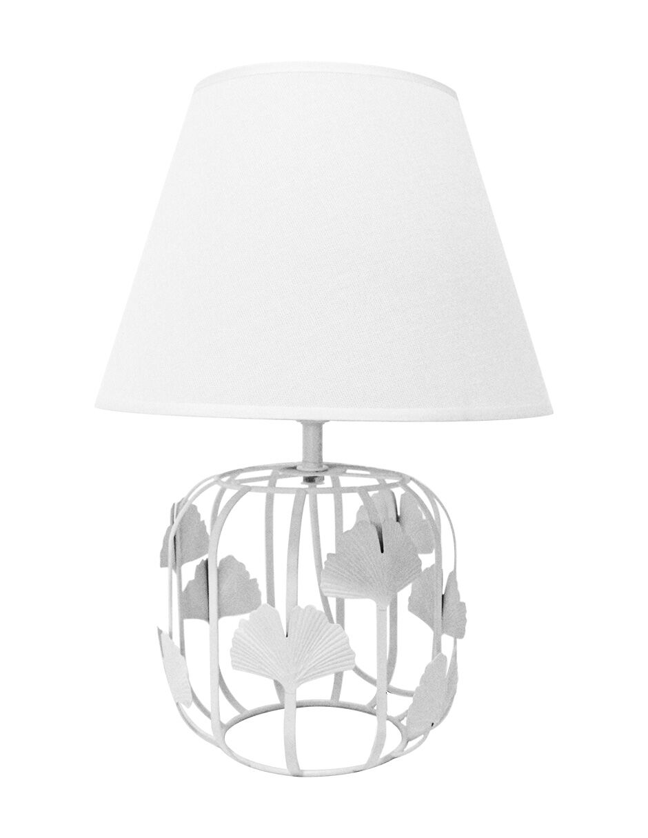 La Lámpara de mesa de metal blanco es la pieza maestra para quien busca delicadeza, modernidad y una presencia artística refinada en su decoración de oficina o estudio personal. Este objeto ofrece una sofisticación contemporánea incomparable para cualquier escritorio ejecutivo, mesa lateral o rincón de lectura en tu espacio de trabajo. Su sola presencia ayuda a elevar la ambientación de tu oficina de manera inmediata. Lo logra mediante su diseño detallado que combina una base de jaula metálica adornada con siluetas de hojas de Ginkgo y una pantalla cónica textil a juego, lo que evoca la calidez del diseño botánico moderno en la categoría de Home Office.