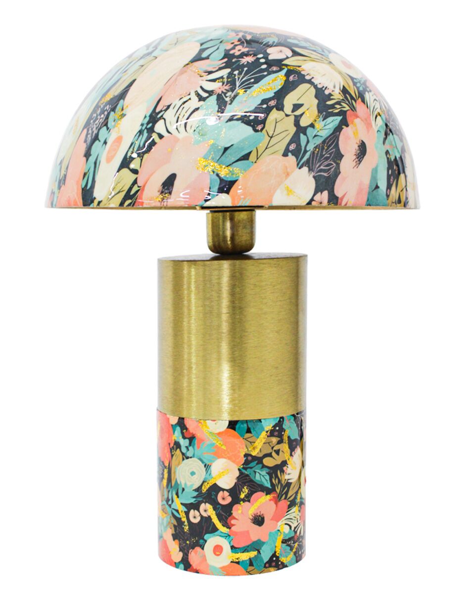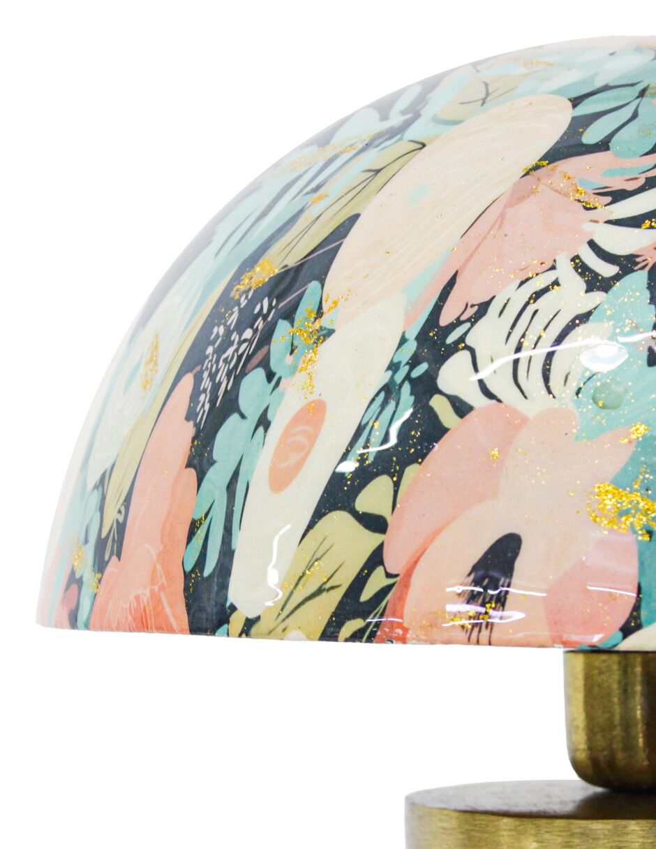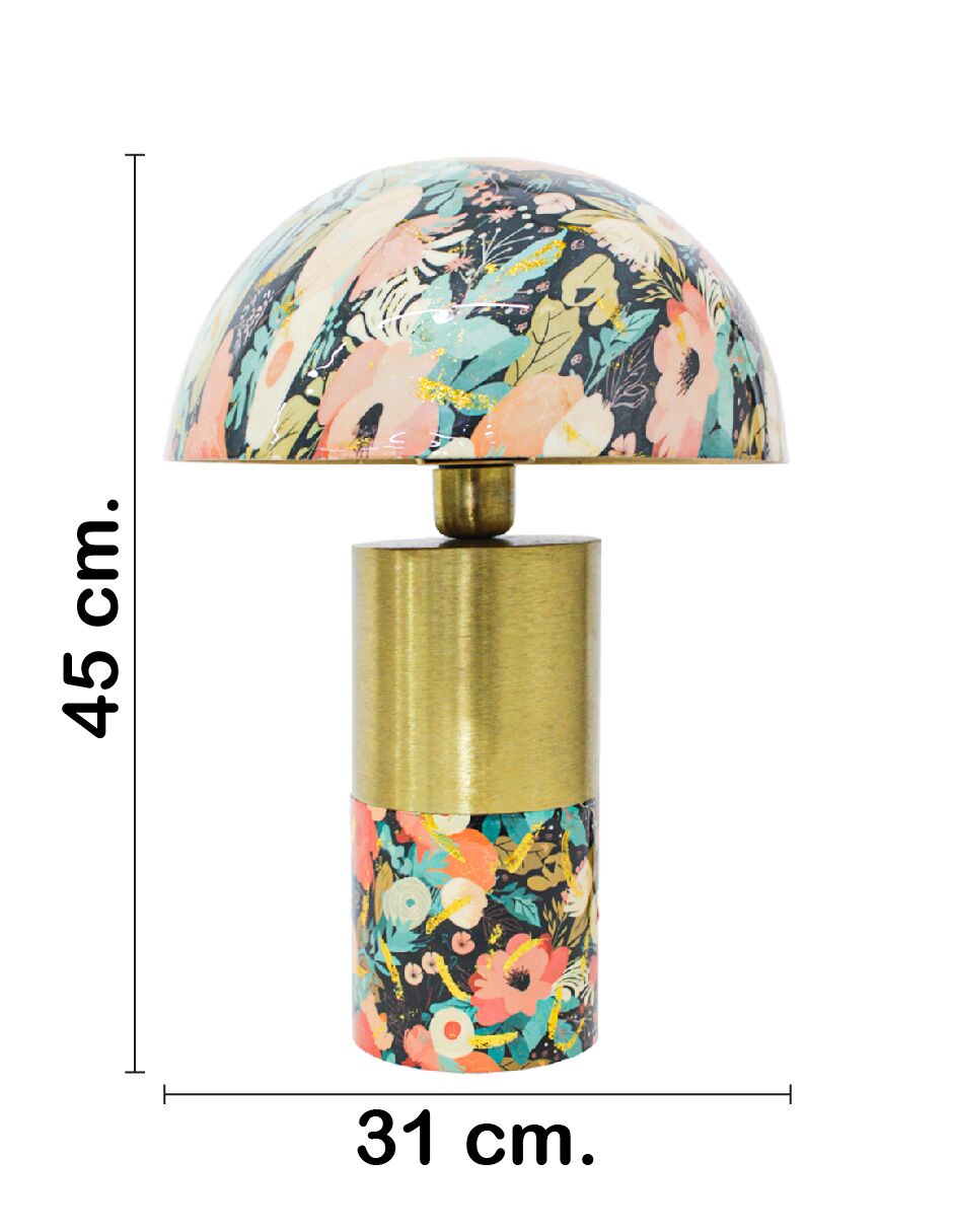 Lámpara de mesa de metal diseño cúpula con flores rosas de 31x31x45cm