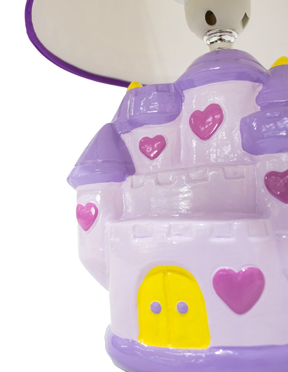 Esta lámpara de mesa irradia magia, encanto y un sueño de cuento de hadas ideal para la habitación de cualquier princesa. Su figura de castillo morado cuidadosamente elaborada en cerámica no solo ofrece una luz suave y mágica para la noche, sino que se convierte en una pieza decorativa central que estimula la imaginación y la fantasía. Medidas: 20 x 20 x 32.5 cm.