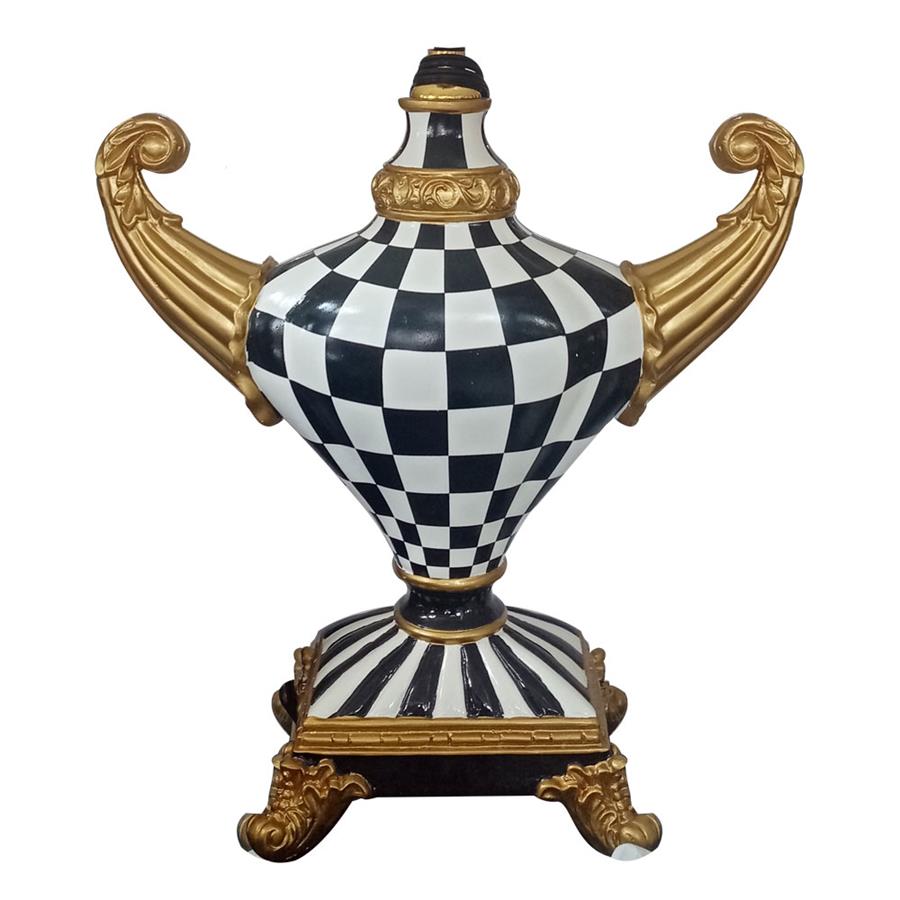 Lampara de porcelana a cuadros blancos con negro con pantalla de 36.5x17x42cm