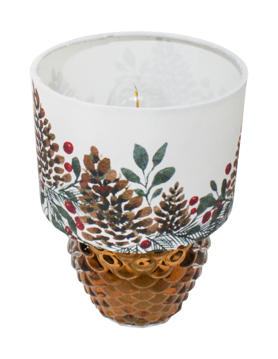 Lámpara Escamas Café con Pantalla Piñas Navideñas