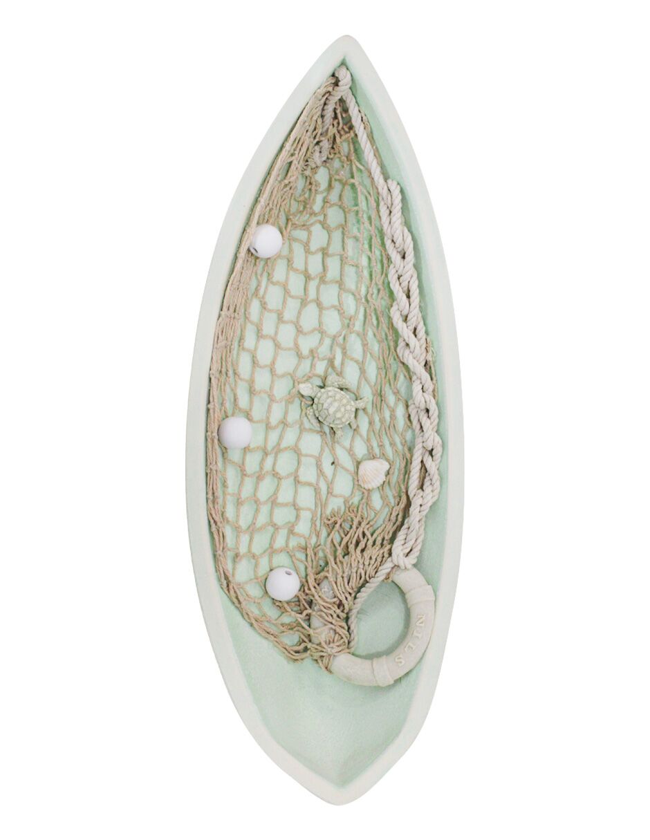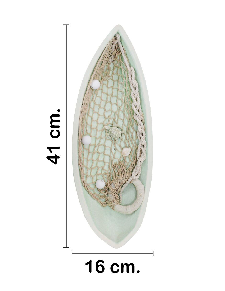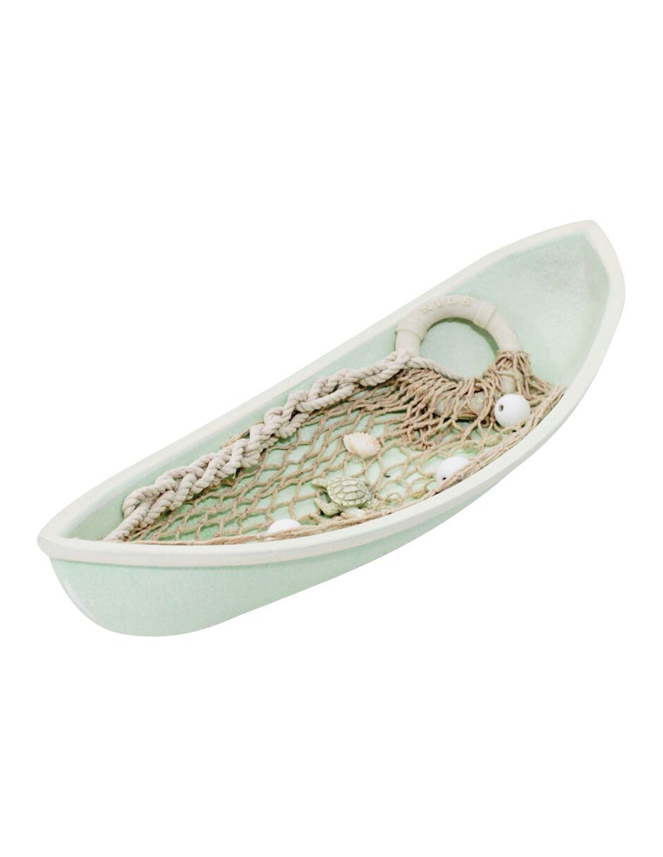 Lancha de madera verde con red de 41x16x10cm