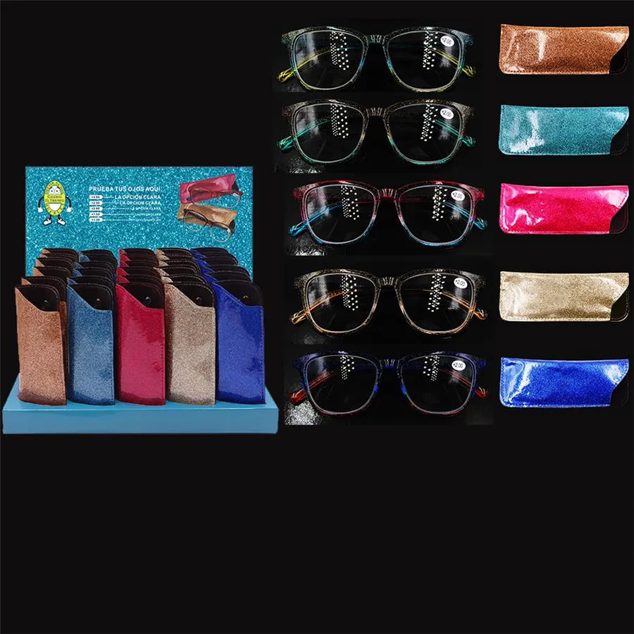 Lentes de graducion +1 con estuche de polipiel glitters en varios colores