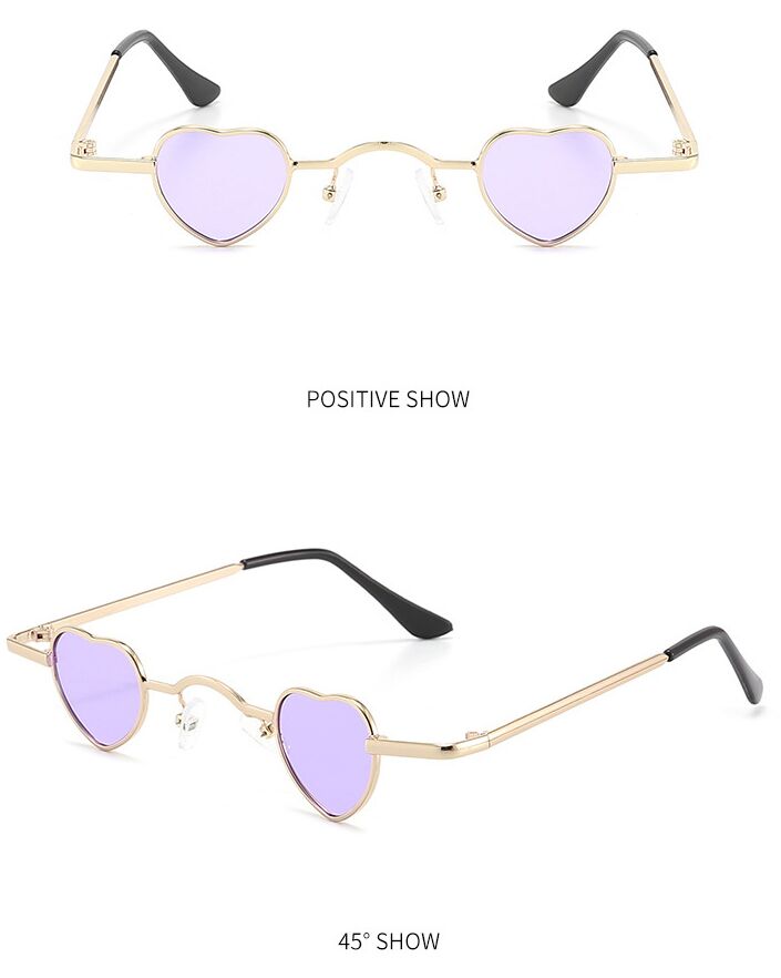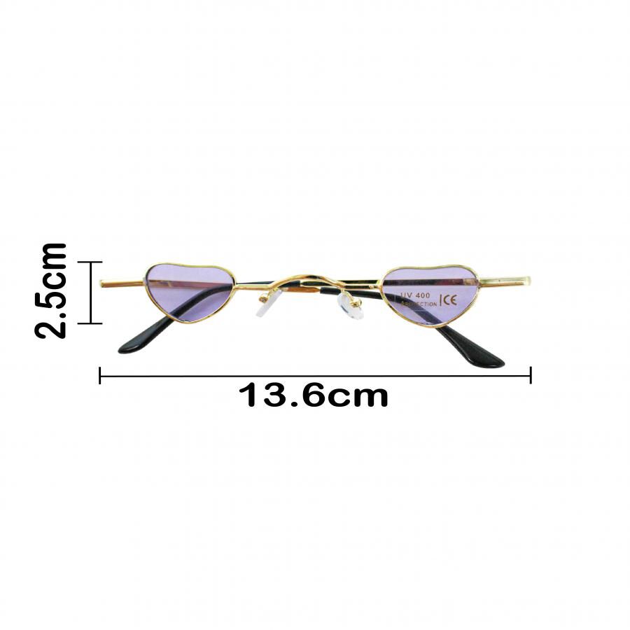 Gafas de sol de cristal lila diseño corazón de 13.5×14.5×2.9cm