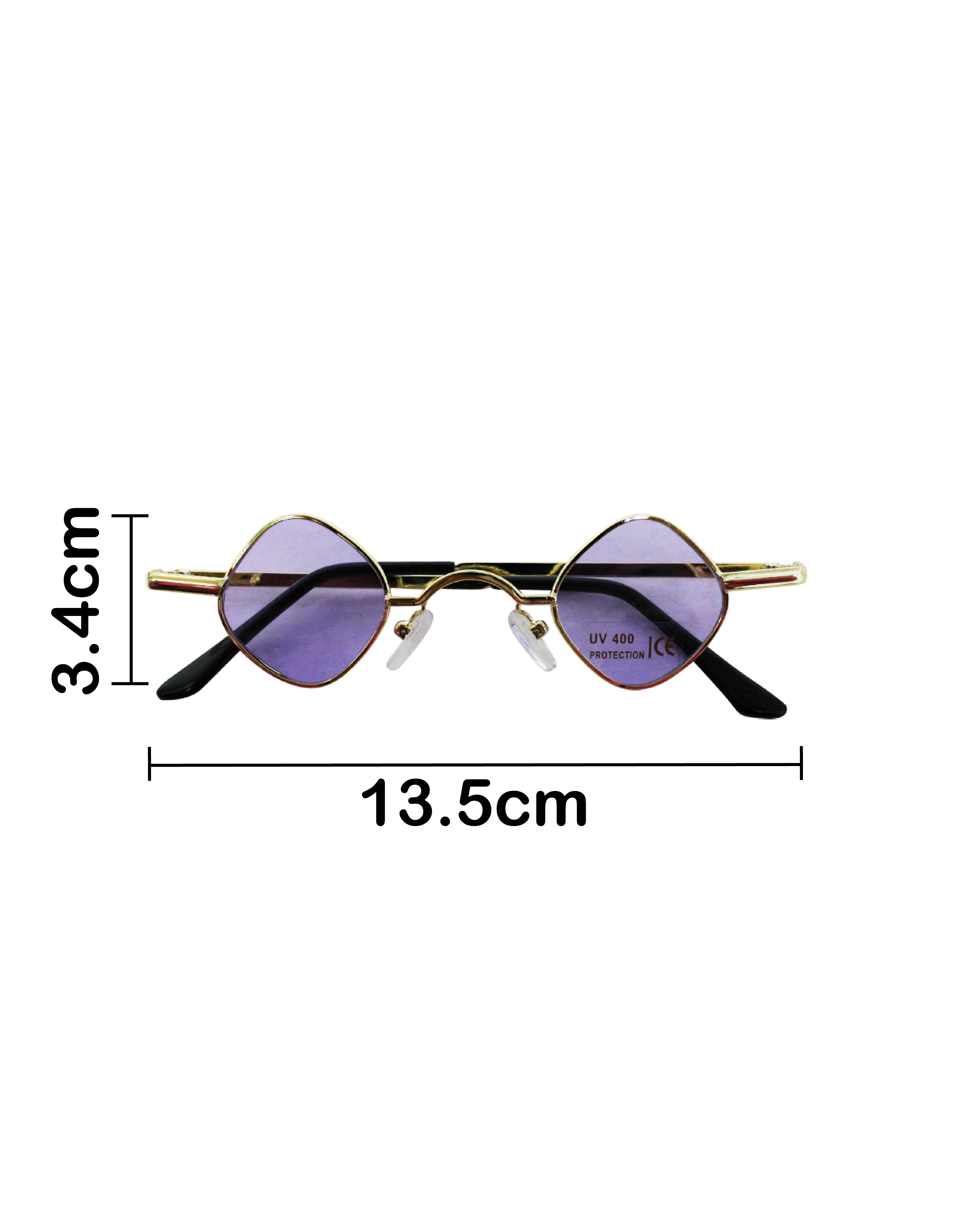 Lentes para sol con cristales diseño rombo púrpura con dorado de 13.5x14x3.6cm