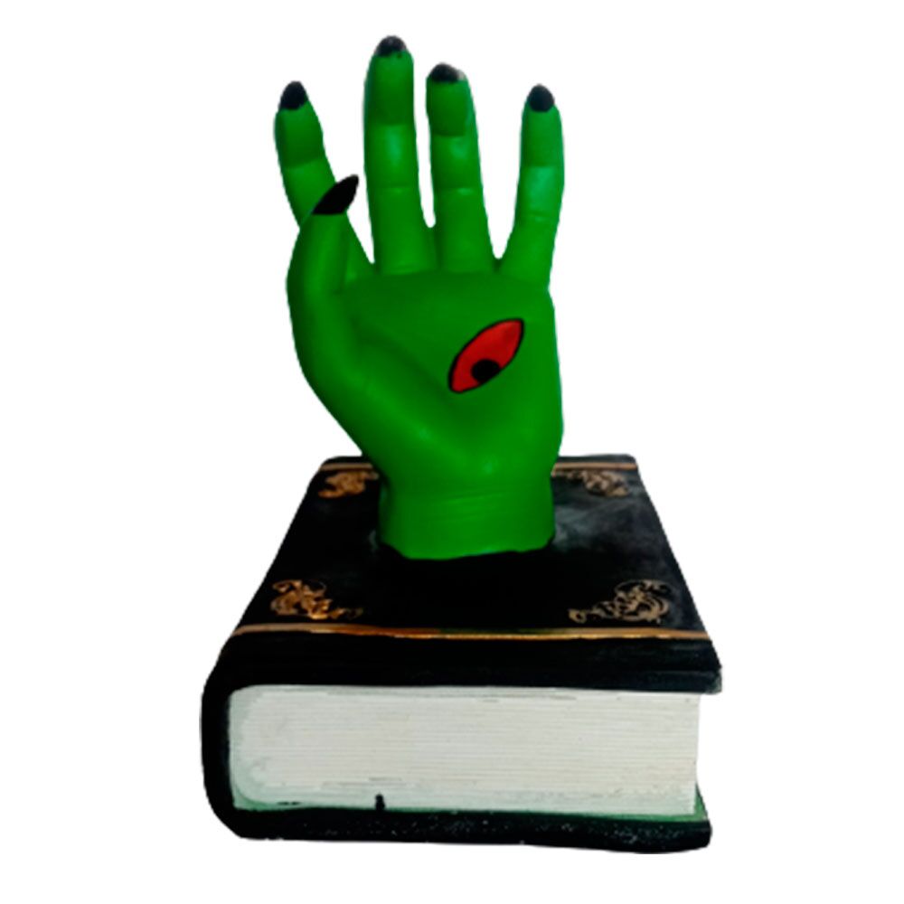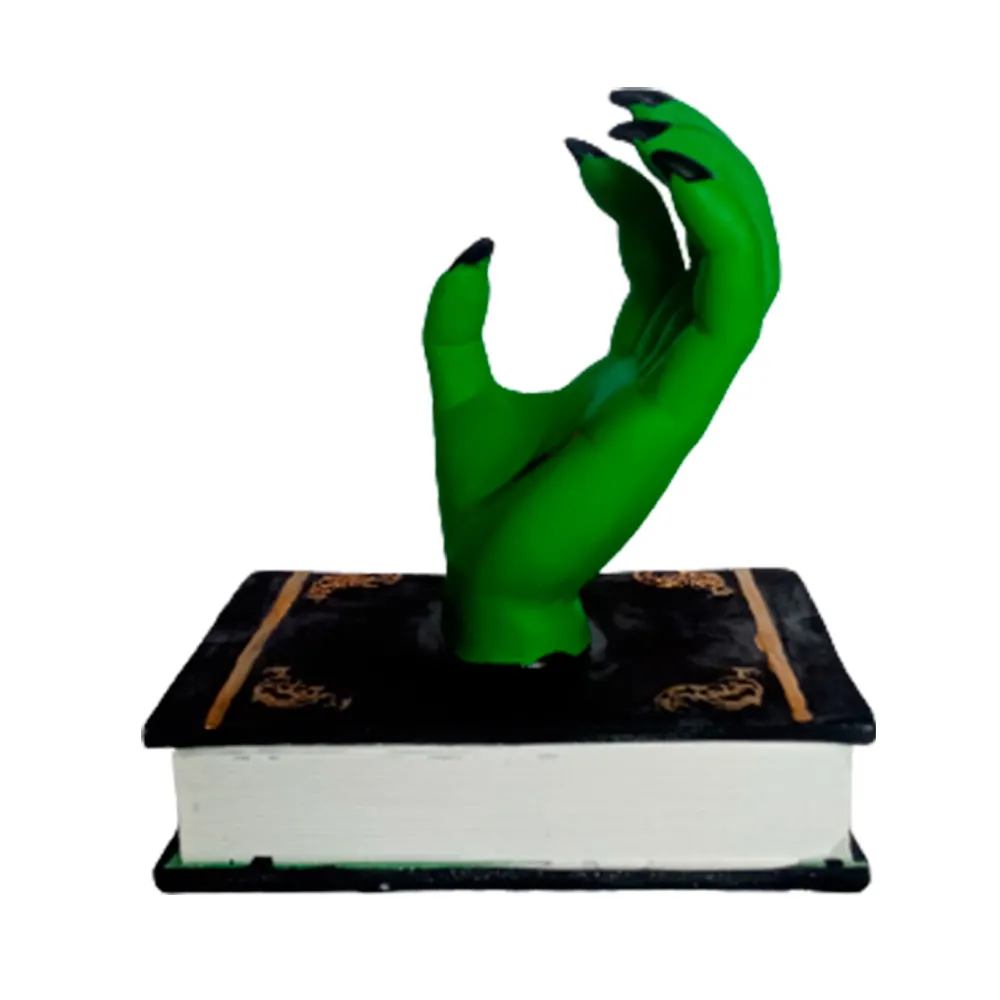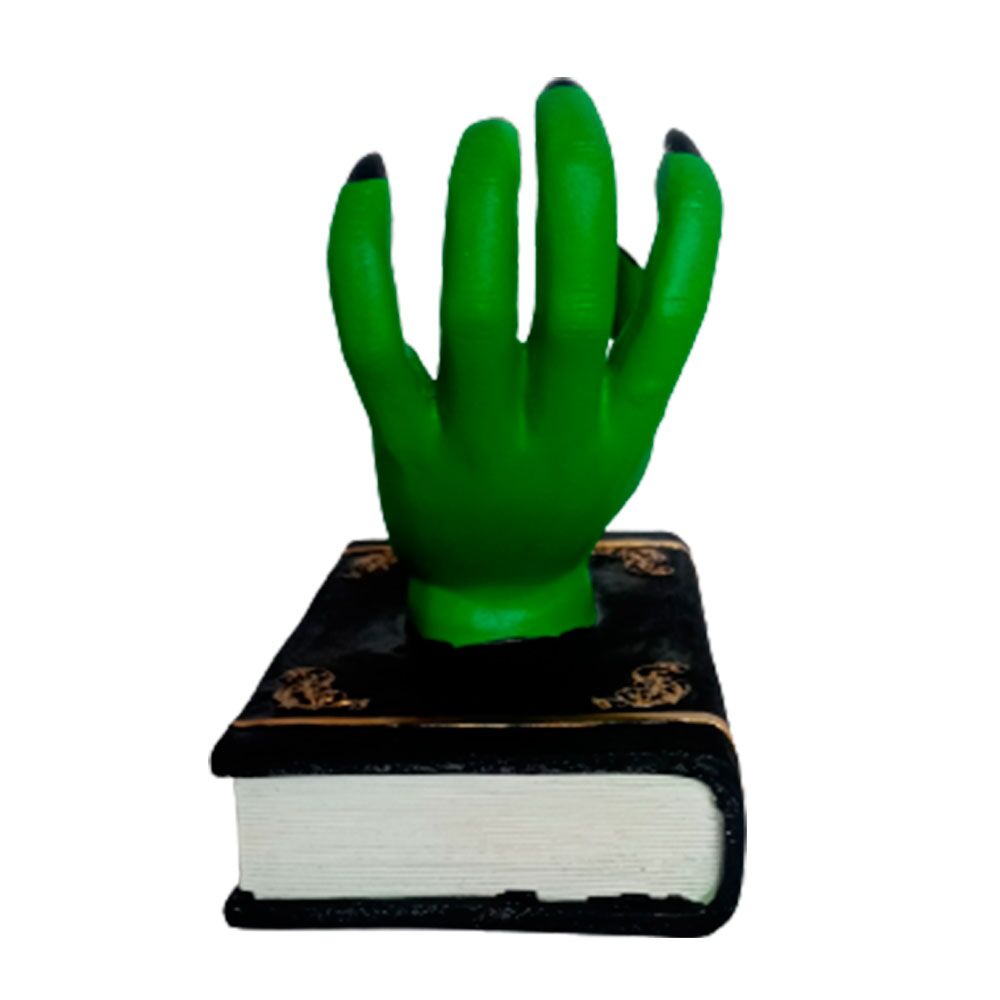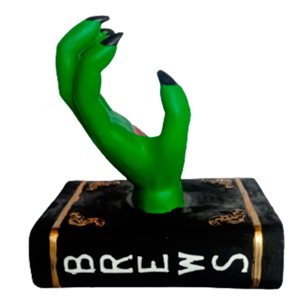 Un toque de misterio y estilo para tu hogar. Esta figura de poliresina es la pieza perfecta para añadir un aire de originalidad y encanto a tu decoración de temporada. Con un diseño detallado que muestra una mano de bruja saliendo de un libro con el texto “BREWS”, y un tamaño de 18×12.5x19cm, su figura crea un ambiente lleno de vida, ideal para una repisa, escritorio o cualquier rincón temático, y sorprenderá a tus invitados con su diseño único.
