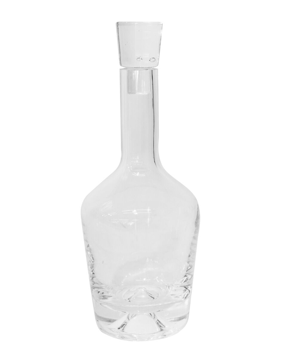 Elegante licorera con tapón de precisión, ideal para exhibir y conservar licores premium. Fabricada en vidrio ultra transparente y grueso que proyecta un brillo similar al cristal. Su diseño base añade estabilidad. Capacidad de 900 ml. Medidas: 11.5 x 29 cm.