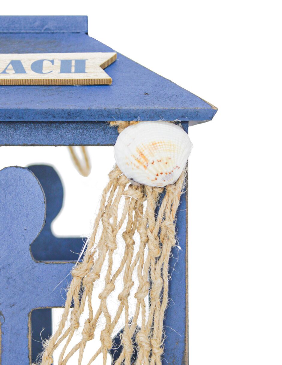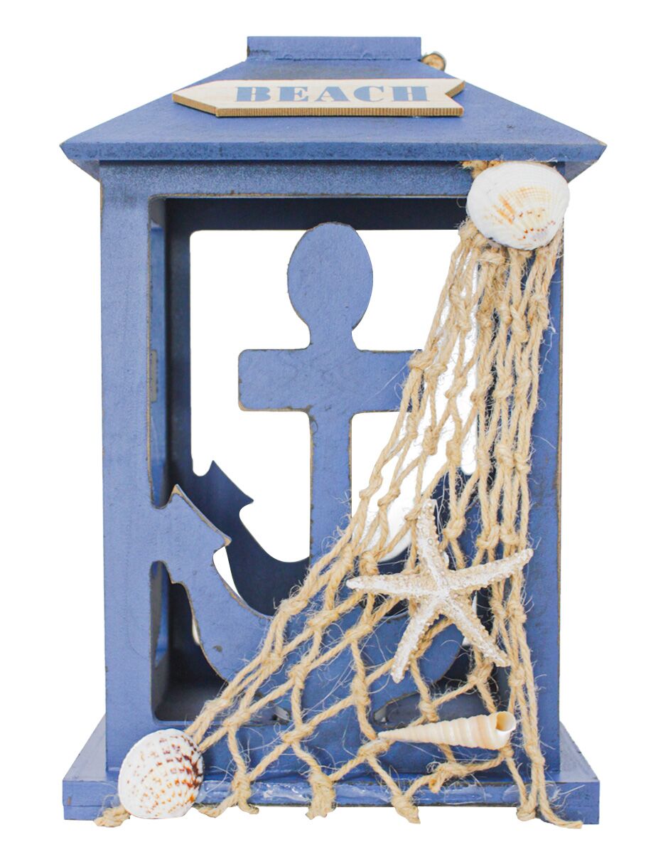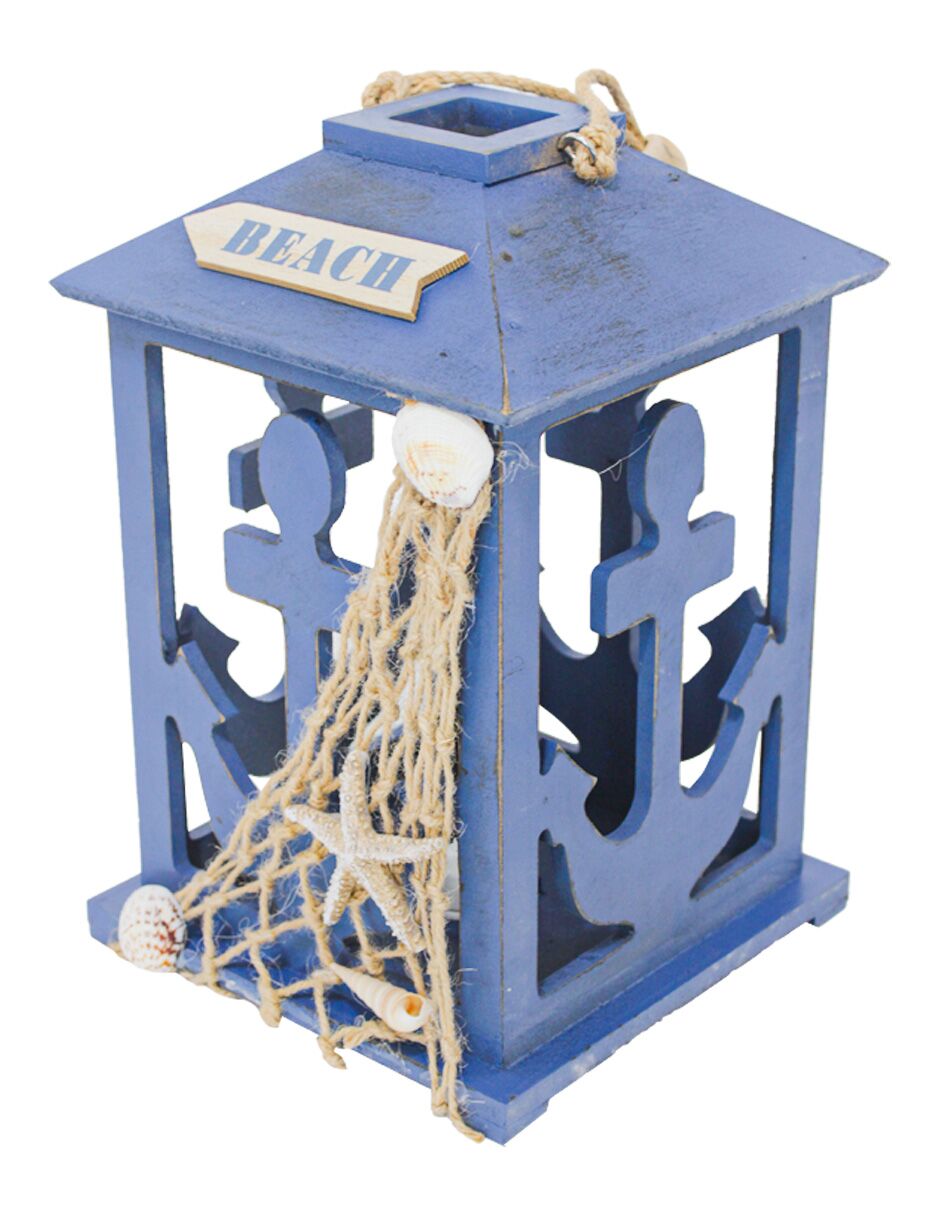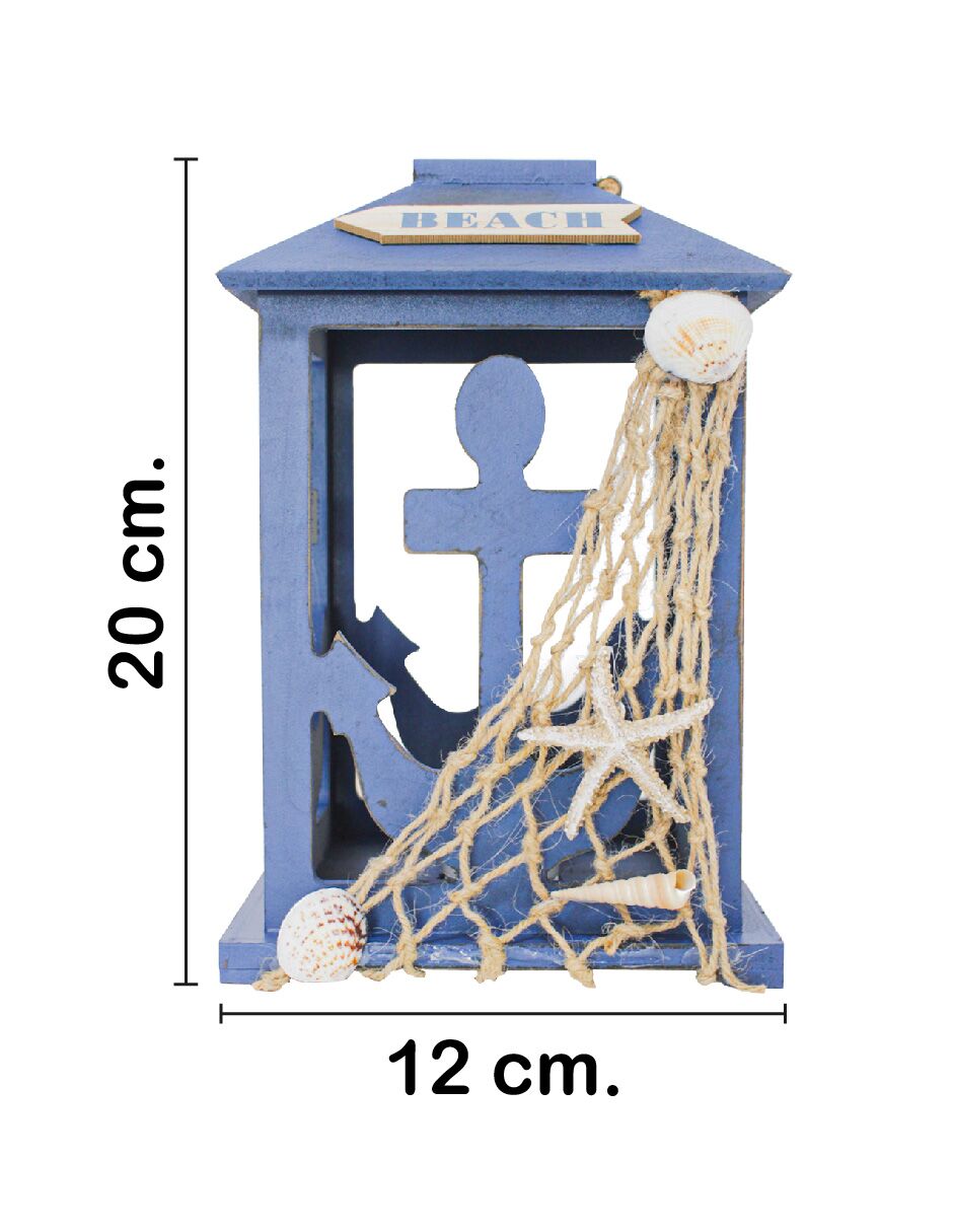 Linterna de madera diseño marino azul marino de 19x19x30cm