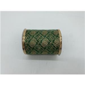 Rollo de listón de gasa color verde con un elegante estampado de copos dorados. El material ligero maximiza el brillo y la festividad. El material es gasa.