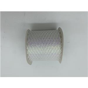 Rollo de listón de malla en color blanco iridiscente. La combinación de malla y el brillo iridiscente crea un efecto de nieve etérea y moderna.