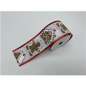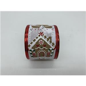 Rollo de listón de tela con un dulce estampado de muñeco de jengibre y casa navideña. Un diseño temático que evoca la fantasía. El material es tela.