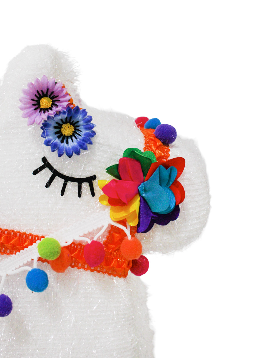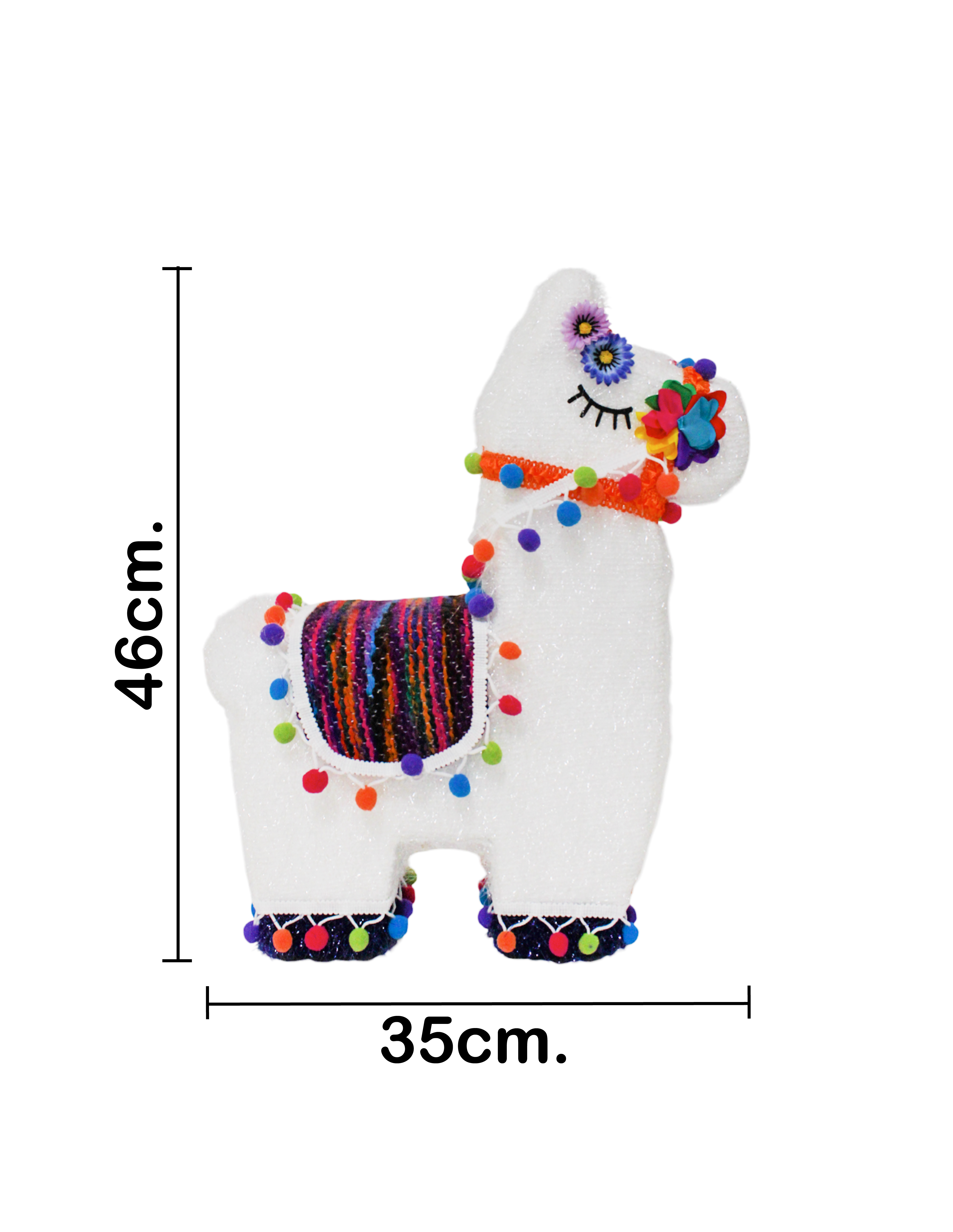 Llena tu hogar de alegría con esta llama decorativa. Su diseño lleno de borlas y pompones de colores te hará sentir la diversión y la dulzura en cada rincón. Medidas: 36x14x47 cm.