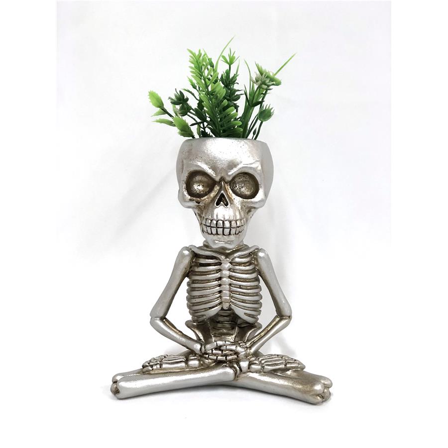 Maceta calavera haciendo yoga de poliresina de 16.5×9.5×25.5cm