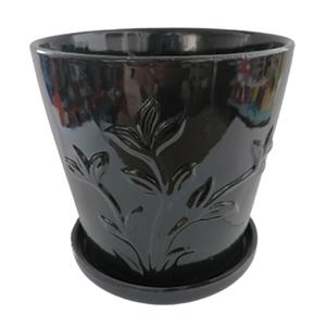 Maceta con base de ceramica negra diseño flores de 13.5x12cm