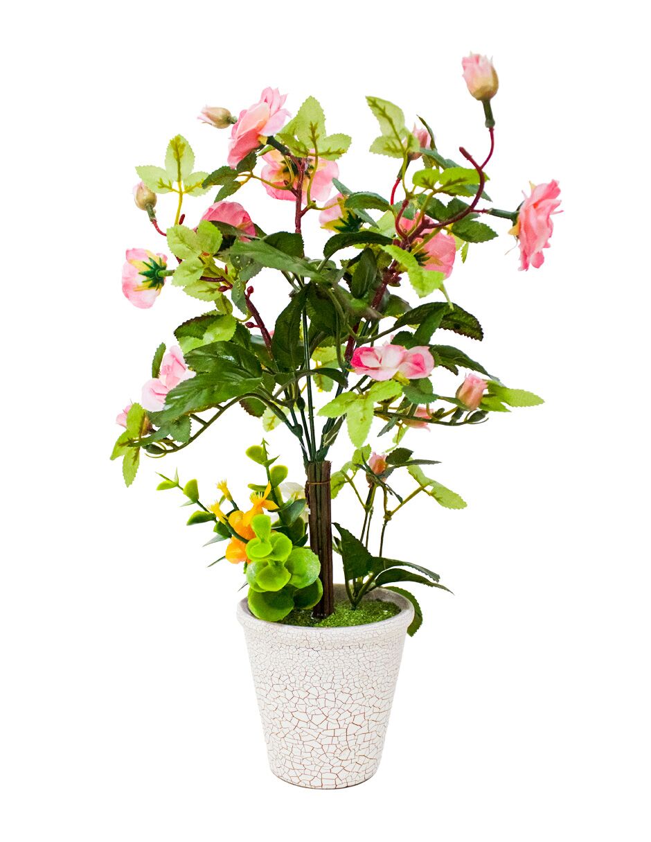 Maceta con flor tipo camelia rosa de 9x9x40cm