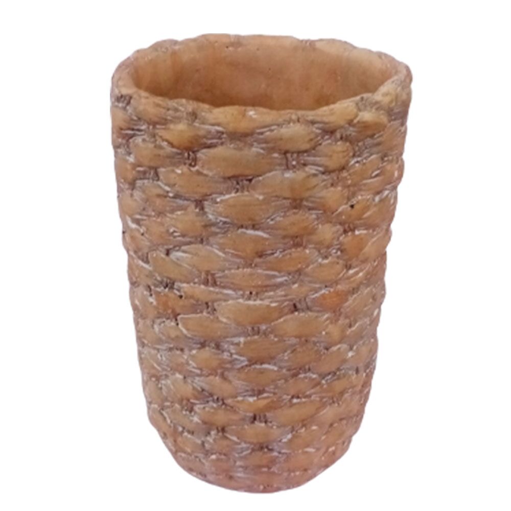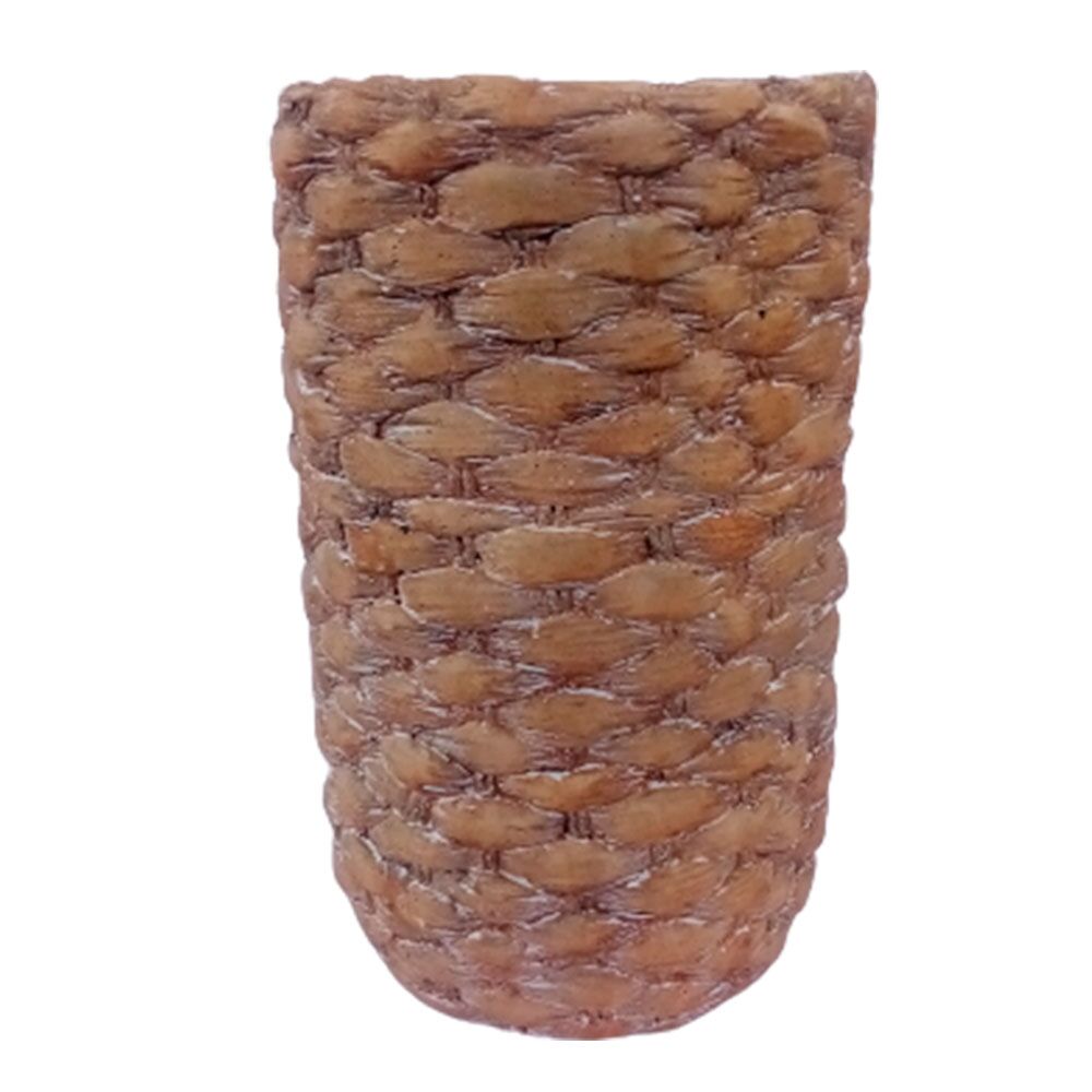 Maceta de cemento cilíndrica diseño trenzado de 16x16x28.5cm