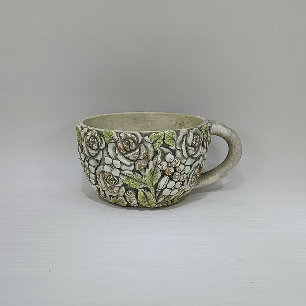 Maceta de cemento diseño taza de flor verde de 21x17x9.5cm