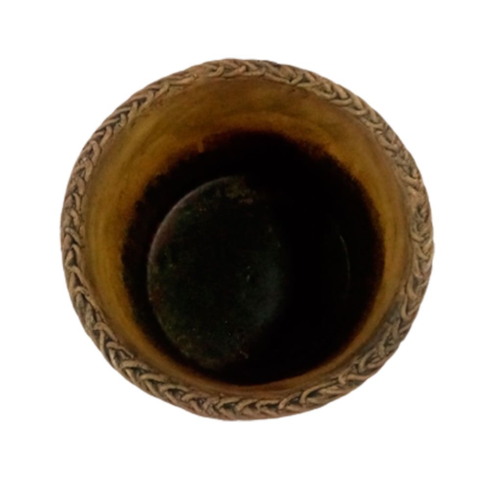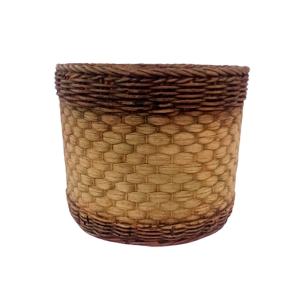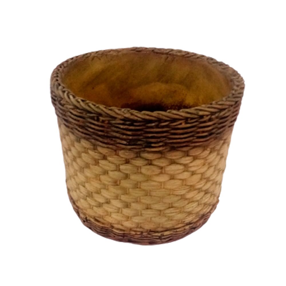 Maceta de cemento redonda diseño tejido con franja de 17.5×17.5×14.5cm