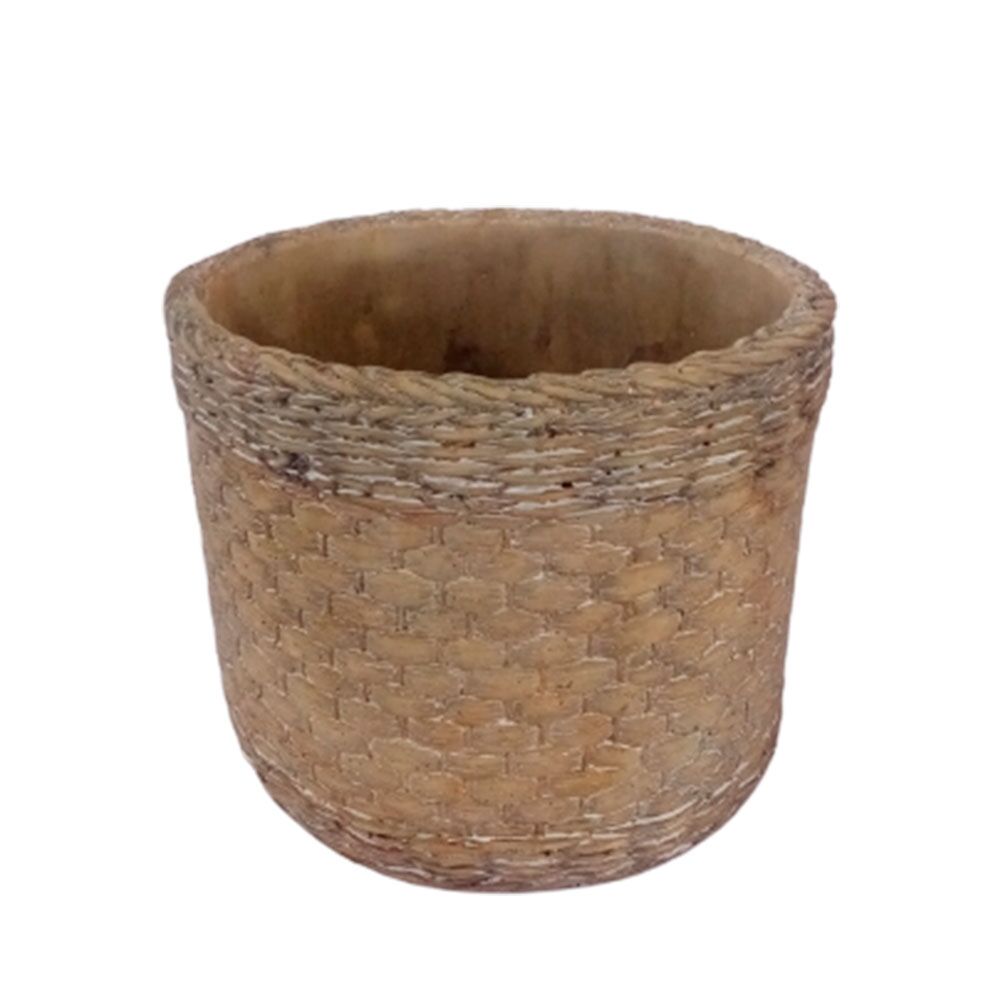 Maceta de cemento redonda diseño tejido de 17.5×17.5×14.5cm