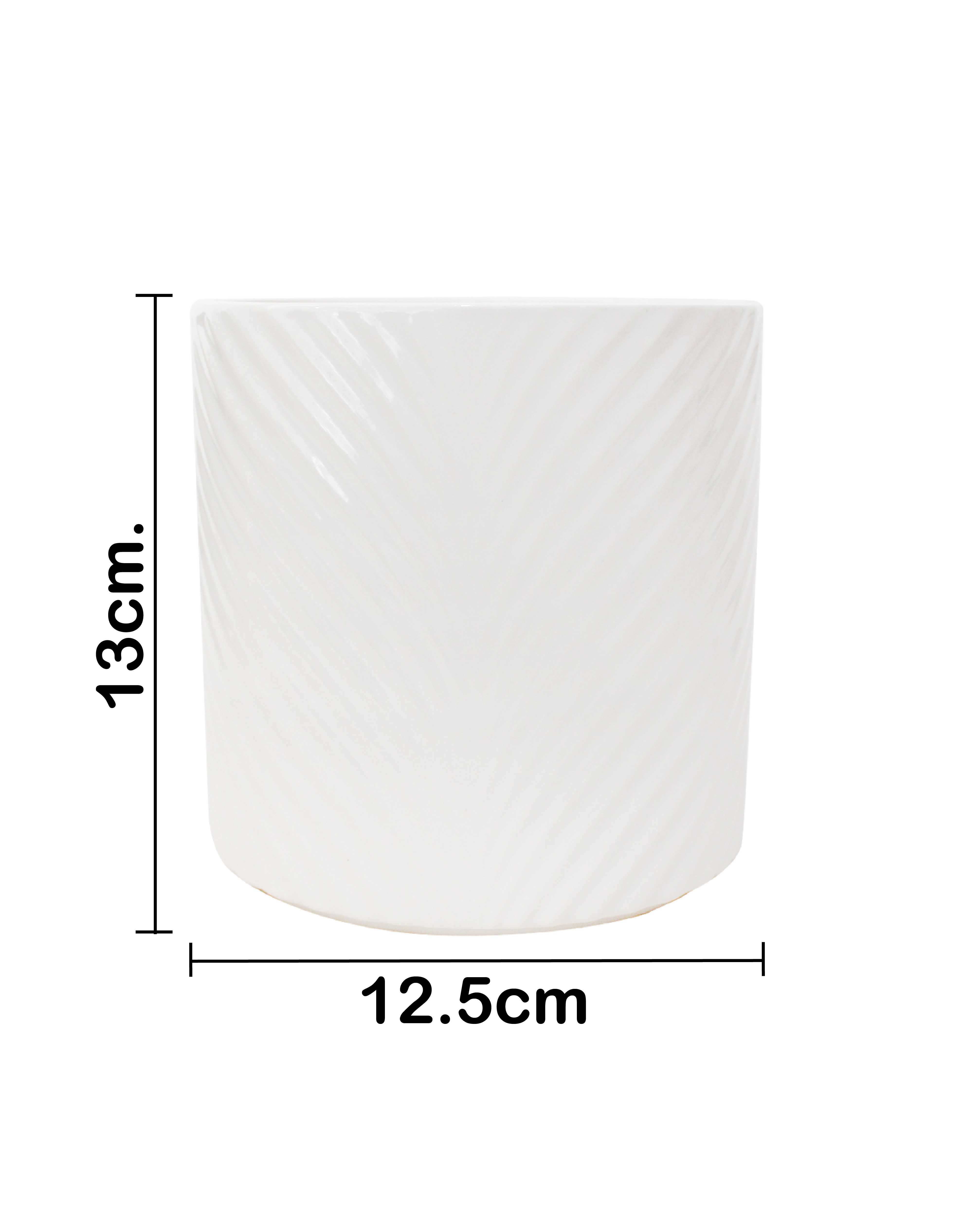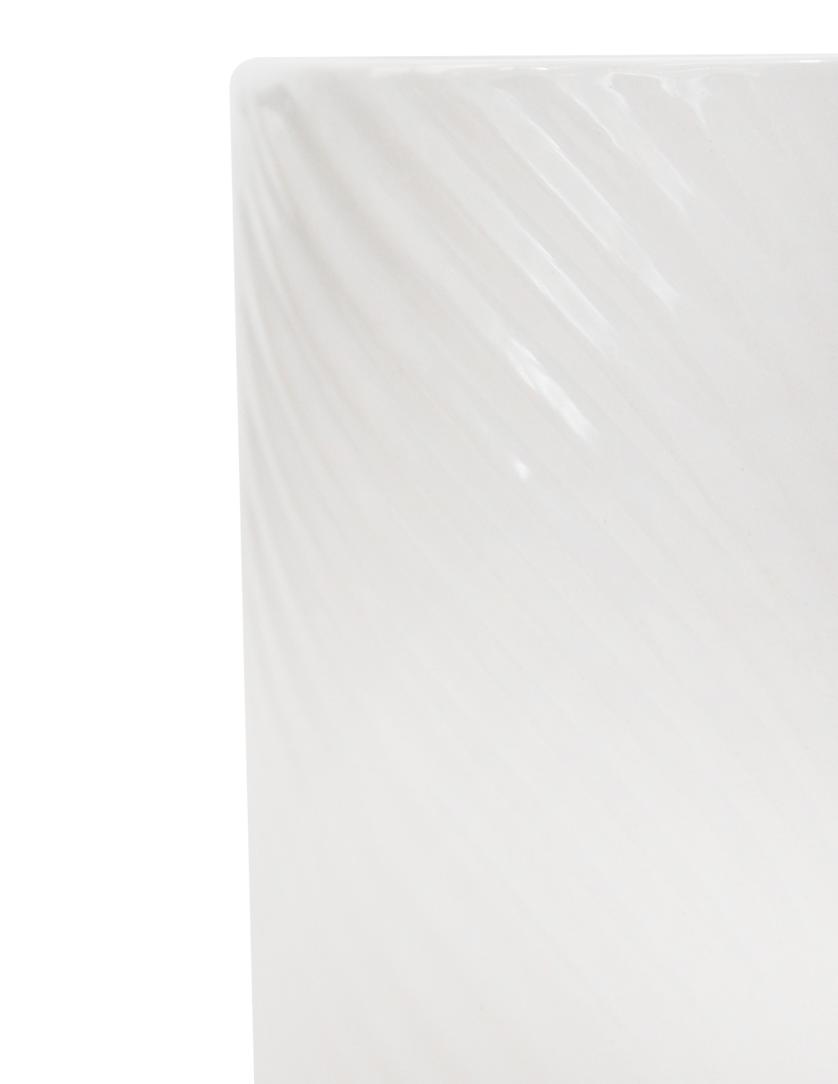 Maceta de cerámica con un diseño ranurado de ondas, ideal para darle un toque único a tus espacios. Esta pieza es perfecta para quienes buscan una decoración moderna y minimalista. Su diseño evoca una sensación de estilo y sofisticación, perfecta para realzar la belleza de tus plantas. Material: cerámica. Medidas: 13x13x13cm.