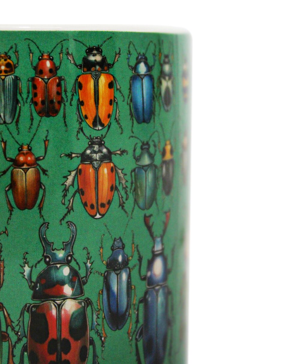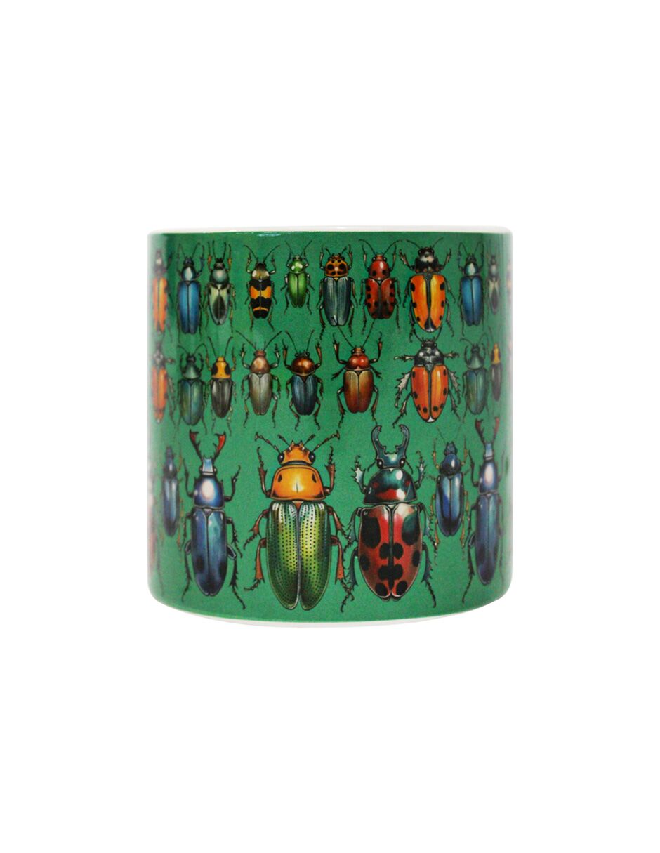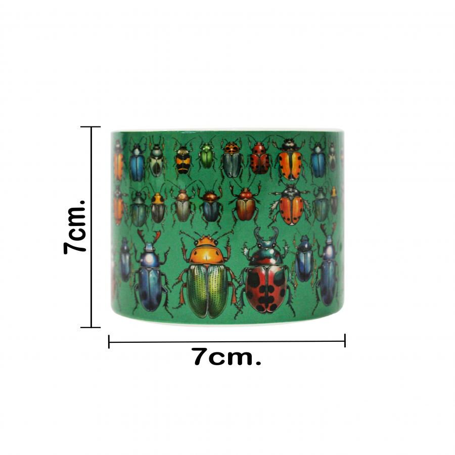 Maceta de ceramica verde con escarabajos de 7x7cm