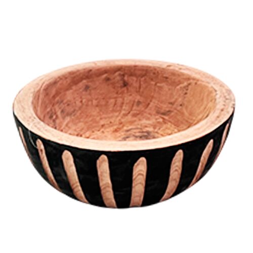 Maceta decorativo fabricado en madera negra con grabado. Medidas: 19x19x7cm. Ideal para interiores que buscan elegancia y estilo artesanal.