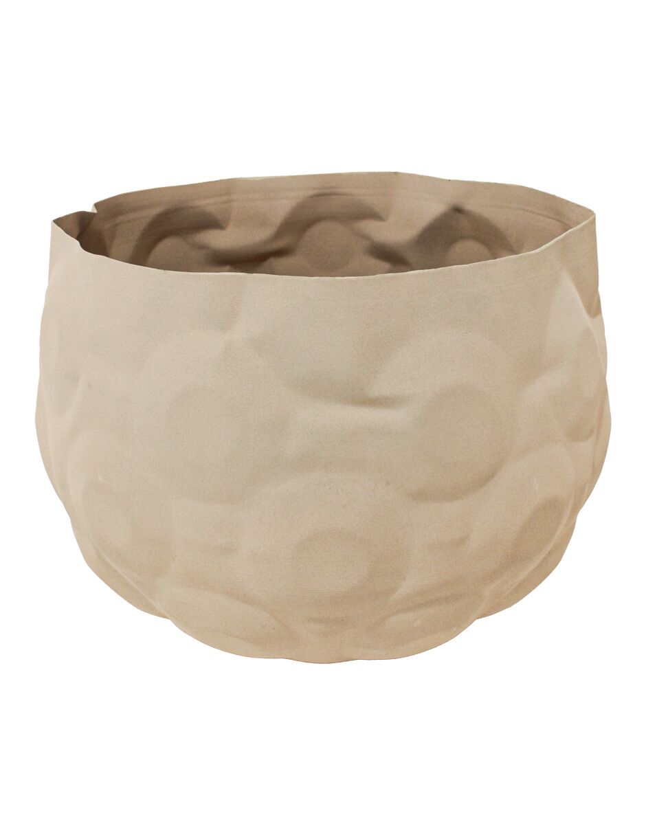 Maceta de metal diseño piedra beige de 43x43x33cm